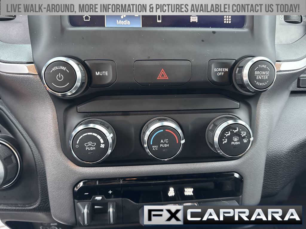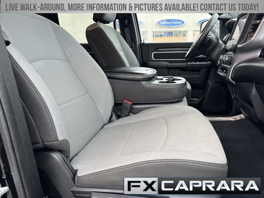 2 Way Rear Headrest Seat, 3.73 Axle Ratio, 4 Way Front Headrests, 4-Wheel Disc Brakes, 40/20/40 Split Bench Seat, 6 Speakers, ABS brakes, Active Noise Control System, Air Conditioning, Anti-Spin Differential Rear Axle, Bed Utility Group, Black Exterior Mirrors, Bluetooth Handsfree Phone & Audio, Brake assist, Bumpers: chrome, Center Hub, Center Stack Storage Drawer, Chrome Flat Cab-Length Side Steps, Cloth 40/20/40 Bench Seat, Compass, Connectivity - US/Canada, Delay-off headlights, Driver door bin, Dual front impact airbags, Dual front side impact airbags, Electronic Stability Control, Electronically Controlled Throttle, Emergency communication system: SiriusXM Guardian, Exterior Mirrors w/Heating Element, Front anti-roll bar, Front Center Armrest w/Storage, Front Fog Lamps, Front License Plate Bracket, Front reading lights, Fully automatic headlights, Global Telematics Box Module (TBM), GPS Antenna Input, Heated door mirrors, Illuminated entry, Integrated Center Stack Radio, Integrated Voice Command w/Bluetooth, LED Bed Lighting, Low tire pressure warning, Manual Adjust 4-Way Driver Seat, Manufacturer's Statement of Origin, MOPAR Deployable Bed Step, MOPAR Spray In Bedliner, Occupant sensing airbag, Outside temperature display, Overhead airbag, Overhead console, Panic alarm, ParkView Rear Back-Up Camera, Passenger door bin, Passenger vanity mirror, Power 2-Way Driver Lumbar Adjust, Power Adjust Mirrors, Power door mirrors, Power steering, Power windows, Protection Group, Quick Order Package 2GZ Big Horn, Radio data system, Radio: Uconnect 3 w/5" Display, Radio: Uconnect 5 W w/8.4" Display, Rear anti-roll bar, Rear Folding Seat, Rear seat center armrest, Rear step bumper, Remote keyless entry, SiriusXM Radio Service, Speed control, Tachometer, Tilt steering wheel, Tip Start, Tow Hooks, Traction control, Trip computer, Turn signal indicator mirrors, Variably intermittent wipers, Voltmeter, Wheels: 18" x 8.0" Steel Chrome Clad.