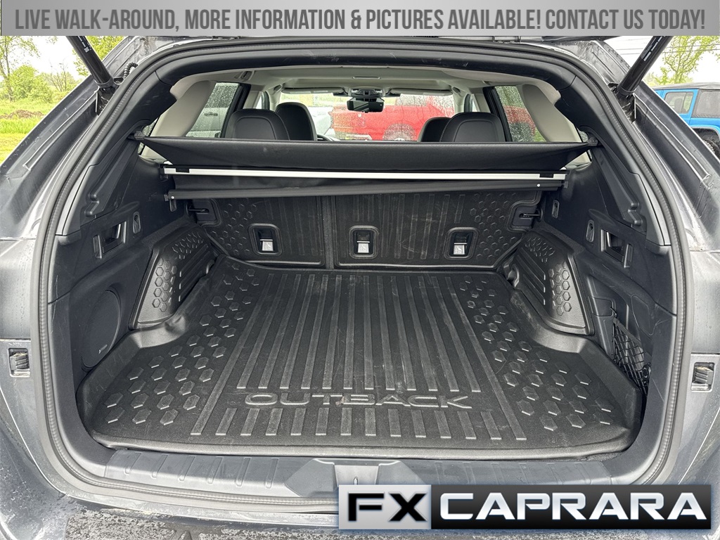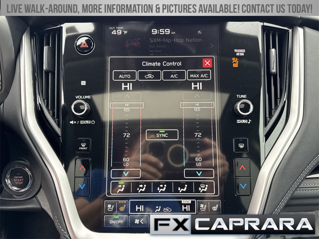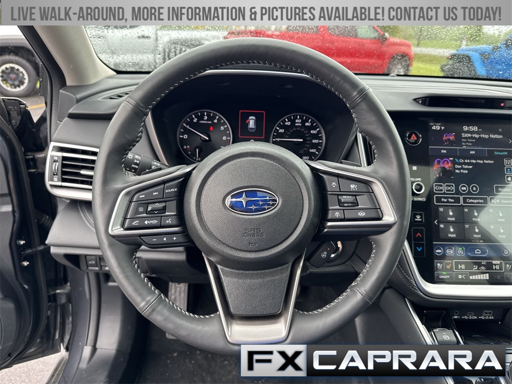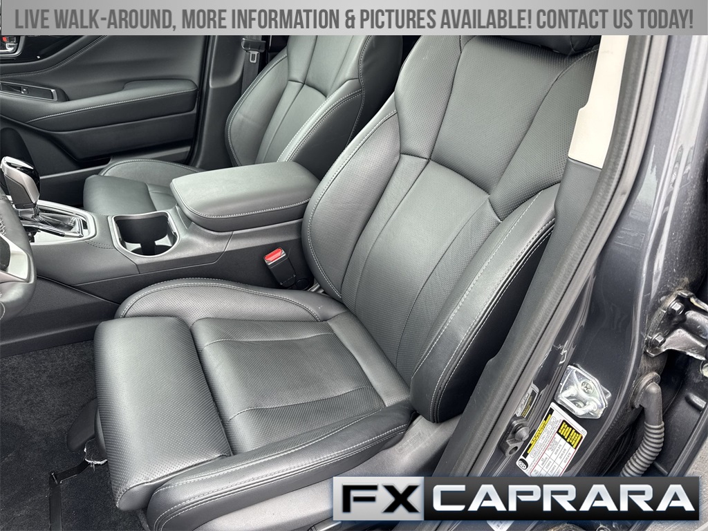 12 Speakers, 3.90 Axle Ratio, 4-Wheel Disc Brakes, ABS brakes, Air Conditioning, All-Weather Floor Liners, Alloy wheels, AM/FM radio: SiriusXM, Auto High-beam Headlights, Auto-Dimming Exterior Mirror w/Approach Light, Auto-dimming Rear-View mirror, Automatic temperature control, Brake assist, Bumpers: body-color, Cargo Sidewall Protector, Compass, Driver door bin, Driver vanity mirror, Dual front impact airbags, Dual front side impact airbags, Electronic Stability Control, Emergency communication system: STARLINK Safety Plus (3-year free trial), Exterior Parking Camera Rear, Four wheel independent suspension, Front anti-roll bar, Front Bucket Seats, Front Center Armrest w/Storage, Front dual zone A/C, Front fog lights, Front reading lights, Fully automatic headlights, Garage door transmitter: HomeLink, harman/kardon® Speakers, Heated & Ventilated Front Bucket Seats, Heated door mirrors, Heated front seats, Heated rear seats, Heated steering wheel, HVAC memory, Illuminated entry, Knee airbag, Leather Shift Knob, Leather steering wheel, LED Upgrade, Low tire pressure warning, Memory seat, Navigation system: TomTom Navigation w/what3words, Occupant sensing airbag, Outside temperature display, Overhead airbag, Overhead console, Panic alarm, Passenger door bin, Passenger vanity mirror, Perforated Nappa Leather-Trimmed Upholstery, Power door mirrors, Power driver seat, Power Liftgate, Power moonroof, Power passenger seat, Power steering, Power windows, Radio: Subaru STARLINK 11.6" Multimedia Nav System, Rear anti-roll bar, Rear Bumper Cover, Rear Seat Back Protector, Rear seat center armrest, Rear window defroster, Rear window wiper, Remote CD player, Remote keyless entry, Roof rack, Security system, Speed control, Speed-sensing steering, Splash Guards, Split folding rear seat, Spoiler, Standard Model, Steering wheel mounted audio controls, Tachometer, Telescoping steering wheel, Tilt steering wheel, Traction control, Trip computer, Turn signal indicator mirrors, Variably intermittent wipers, Ventilated front seats, Wheels: 18" x 7J Black Aluminum-Alloy, Wireless Charger.