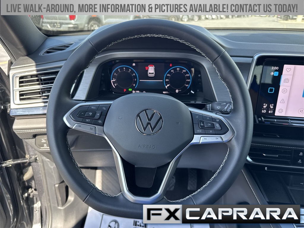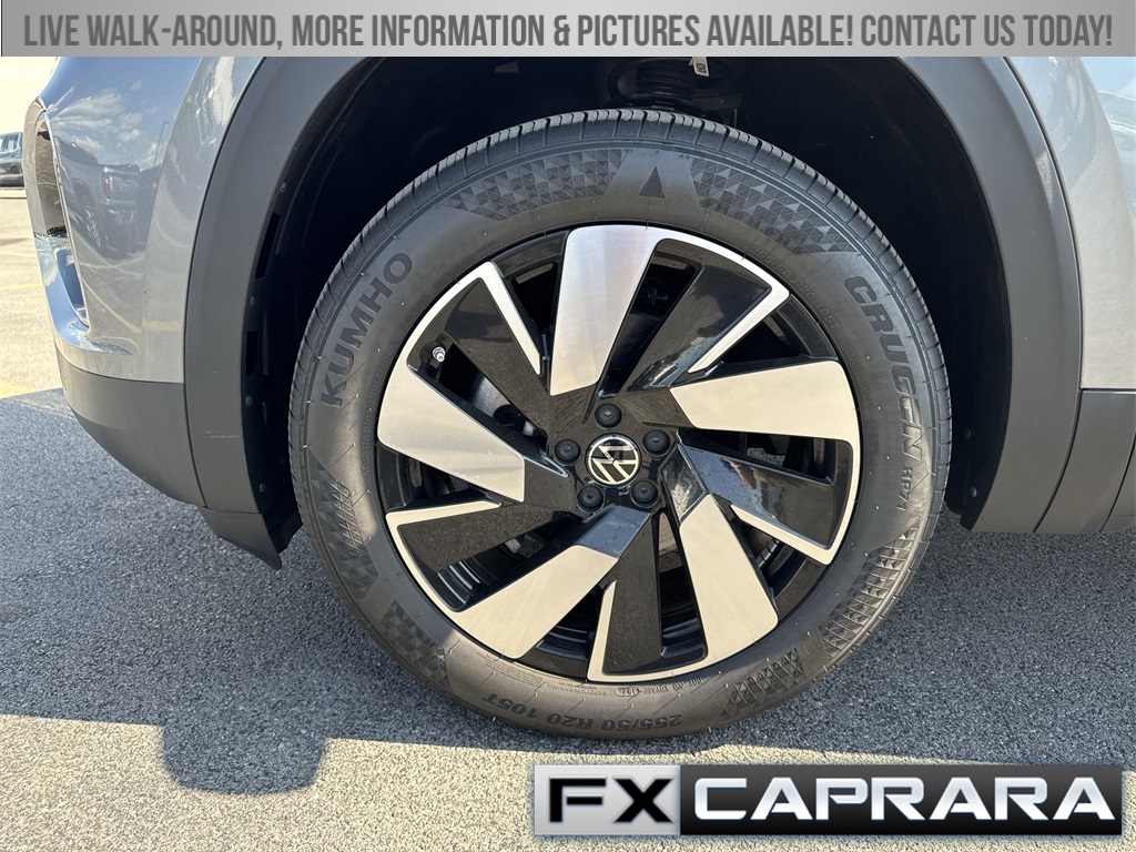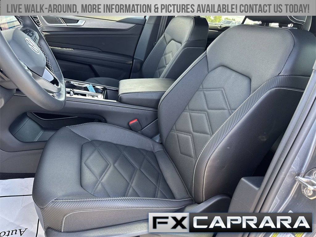 3.60 Axle Ratio, 4-Wheel Disc Brakes, 4-Wheel Independent Suspension, 6 Speakers, ABS brakes, Air Conditioning, Alloy wheels, AM/FM radio: SiriusXM with 360L, Auto-dimming Rear-View mirror, Automatic temperature control, Brake assist, Bumpers: body-color, Compass, Delay-off headlights, Driver door bin, Driver vanity mirror, Dual front impact airbags, Dual front side impact airbags, Electronic Stability Control, Emergency communication system: VW Car-Net Safe & Secure 5-year, Exterior Parking Camera Rear, Four wheel independent suspension, Front anti-roll bar, Front Bucket Seats, Front Center Armrest, Front dual zone A/C, Front fog lights, Front reading lights, Fully automatic headlights, Heated & Actively Ventilated Front Seats, Heated door mirrors, Heated front seats, Heated steering wheel, Illuminated entry, Low tire pressure warning, Occupant sensing airbag, Outside temperature display, Overhead airbag, Overhead console, Panic alarm, Passenger door bin, Passenger vanity mirror, Perforated V-Tex Leatherette Seating Surfaces, Power door mirrors, Power driver seat, Power Liftgate, Power steering, Power windows, Radio data system, Radio: MIB3 Composition Media AM/FM/HD, Rain sensing wipers, Rear anti-roll bar, Rear reading lights, Rear seat center armrest, Rear window defroster, Rear window wiper, Remote keyless entry, Security system, Speed control, Speed-sensing steering, Split folding rear seat, Spoiler, Steering wheel mounted audio controls, Tachometer, Telescoping steering wheel, Tilt steering wheel, Traction control, Trip computer, Turn signal indicator mirrors, Variably intermittent wipers, Ventilated front seats, Wheels: 20" 5-Spoke 2-Tone Machined Alloy.