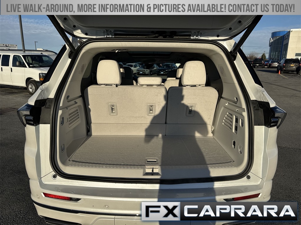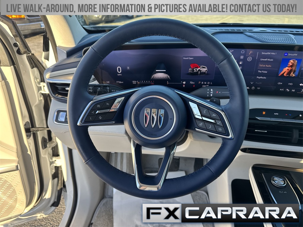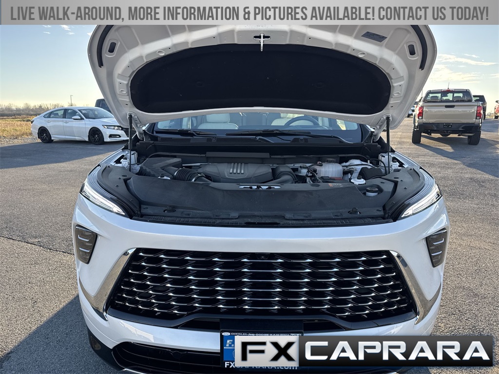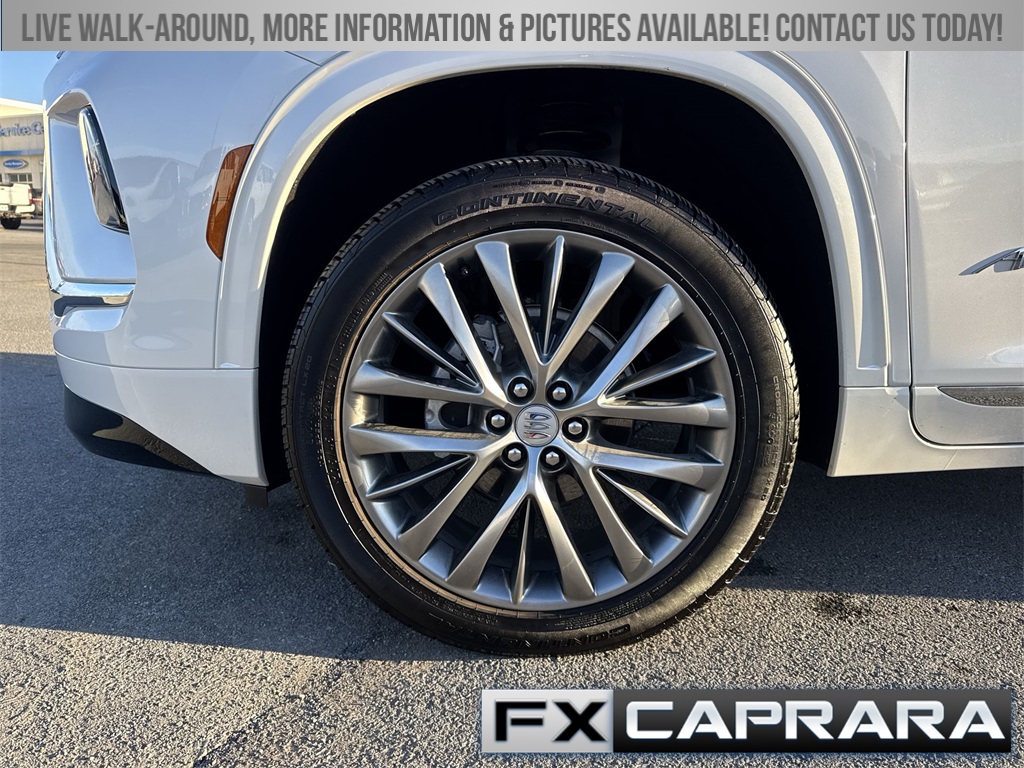 FWD, 16 Speakers, 3rd row seats: split-bench, 4-Wheel Disc Brakes, ABS brakes, Adaptive suspension, Air Conditioning, Alloy wheels, AM/FM radio: SiriusXM with 360L, Auto High-beam Headlights, Auto tilt-away steering wheel, Auto-dimming door mirrors, Auto-dimming Rear-View mirror, Automatic temperature control, Bose Performance 16-Speaker Audio System, Brake assist, Bumpers: body-color, Compass, Delay-off headlights, Driver 4-Way Power Lumbar Seat Adjuster, Driver 8-Way Power Seat Adjuster, Driver door bin, Driver Massage Control with 4-Way Power Lumbar, Driver vanity mirror, Dual front impact airbags, Dual front side impact airbags, Electronic Stability Control, Emergency communication system: OnStar and Buick connected services capable, Four wheel independent suspension, Front anti-roll bar, Front Bucket Seats, Front Center Armrest, Front dual zone A/C, Front Passenger 4-Way Power Lumbar Seat Adjuster, Front Passenger 6-Way Power Seat Adjuster, Front Passenger Massage Control with 4-Way Power Lumbar, Front reading lights, Fully automatic headlights, Garage door transmitter, Heads-Up Display, Heated door mirrors, Heated Driver and Front Passenger Seats, Heated front seats, Heated rear seats, Heated steering wheel, Illuminated entry, Leather steering wheel, Low tire pressure warning, Memory seat, Memory Settings, Navigation System, Occupant sensing airbag, Outside temperature display, Overhead airbag, Overhead console, Panic alarm, Passenger door bin, Passenger vanity mirror, Power door mirrors, Power driver seat, Power Liftgate, Power moonroof, Power passenger seat, Power steering, Power windows, Premium audio system: Buick Infotainment System, Quilted and Perforated Leather-Appointed Seat Trim, Radio data system, Radio: Infotainment Center, Rain sensing wipers, Rear air conditioning, Rear anti-roll bar, Rear reading lights, Rear side impact airbag, Rear window defroster, Rear window wiper, Remote keyless entry, Security system, SiriusXM with 360L Trial Subscription, Speed control, Speed-sensing steering, Spoiler, Steering wheel memory, Steering wheel mounted audio controls, Tachometer, Telescoping steering wheel, Tilt steering wheel, Traction control, Trip computer, Turn signal indicator mirrors, Variably intermittent wipers, Ventilated Driver and Front Passenger Seats, Ventilated front seats, Ventilated rear seats, Voltmeter, Wheels: 22" Alloy with Avenir Pearl Nickel Finish, Wireless Apple CarPlay, Wireless Google Android Auto, FWD.