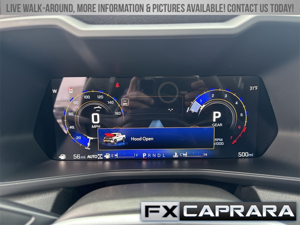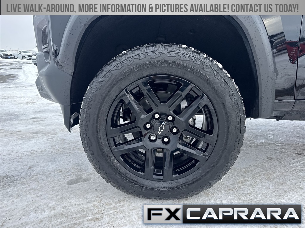 4WD, 3.42 Rear Axle Ratio, 4-Spoke Wrapped Steering Wheel, 4-Way Manual Passenger Seat Adjuster, 4-Wheel Disc Brakes, 40" Off-Road Roof Light Bar (LPO), 6 Speakers, 6-Speaker Audio System Feature, 6-Way Manual Driver Seat Adjuster, 8-Way Power Driver Seat Adjuster, ABS brakes, Accessory Switch Kit (LPO), Adaptive Cruise Control, Air Conditioning, Alloy wheels, AM/FM radio: SiriusXM, Apple CarPlay/Android Auto, Auto High-beam Headlights, Automatic Emergency Braking, Automatic temperature control, Bed-Mounted Sport Bar w/Sail Panel (LPO), Black Nameplates (LPO), Black Spray-On Bedliner w/Chevrolet Logo, Brake assist, Chevy Safety Assist, Cloth Seat Trim, Compass, Delay-off headlights, Driver door bin, Driver vanity mirror, Dual front impact airbags, Dual front side impact airbags, Electronic Stability Control, Emergency communication system: OnStar, Evotex Seat Trim, Following Distance Indicator, Forward Collision Alert, Front anti-roll bar, Front Bucket Seats, Front Center Armrest, Front dual zone A/C, Front Pedestrian & Bicyclist Braking, Front wheel independent suspension, HD Surround Vision, Heated door mirrors, Heated Driver & Front Passenger Seats, Heated Steering Wheel, Illuminated entry, IntelliBeam Automatic High Beam On/Off, Lane Keep Assist w/Lane Departure Warning, Low tire pressure warning, Midnight Edition, Navigation System, Occupant sensing airbag, Outside temperature display, Overhead airbag, Overhead console, Panic alarm, Passenger door bin, Passenger vanity mirror, Power Distribution Box (LPO), Power door mirrors, Power Driver Lumbar Control Seat Adjuster, Power steering, Power windows, Preferred Equipment Group 0TR, Radio data system, Radio: 11.3" Diagonal Advanced Color LCD Display, Rear Pedestrian Alert, Rear reading lights, Rear step bumper, Rear window defroster, Remote keyless entry, Remote Vehicle Starter System, Security system, SiriusXM Trial Subscription, Speed control, Speed-sensing steering, Split folding rear seat, Steering Wheel Mounted Audio Controls, Steering wheel mounted audio controls, Tachometer, Technology Package, Tilt steering wheel, Traction control, Trail Boss Convenience Package II, Trip computer, Variably intermittent wipers, Wheels: 18" x 8.5" Black High Gloss Aluminum, Wheels: 20" x 9" High Gloss Black Aluminum, Wireless Phone Charging, Wireless Phone Projection, 4WD.