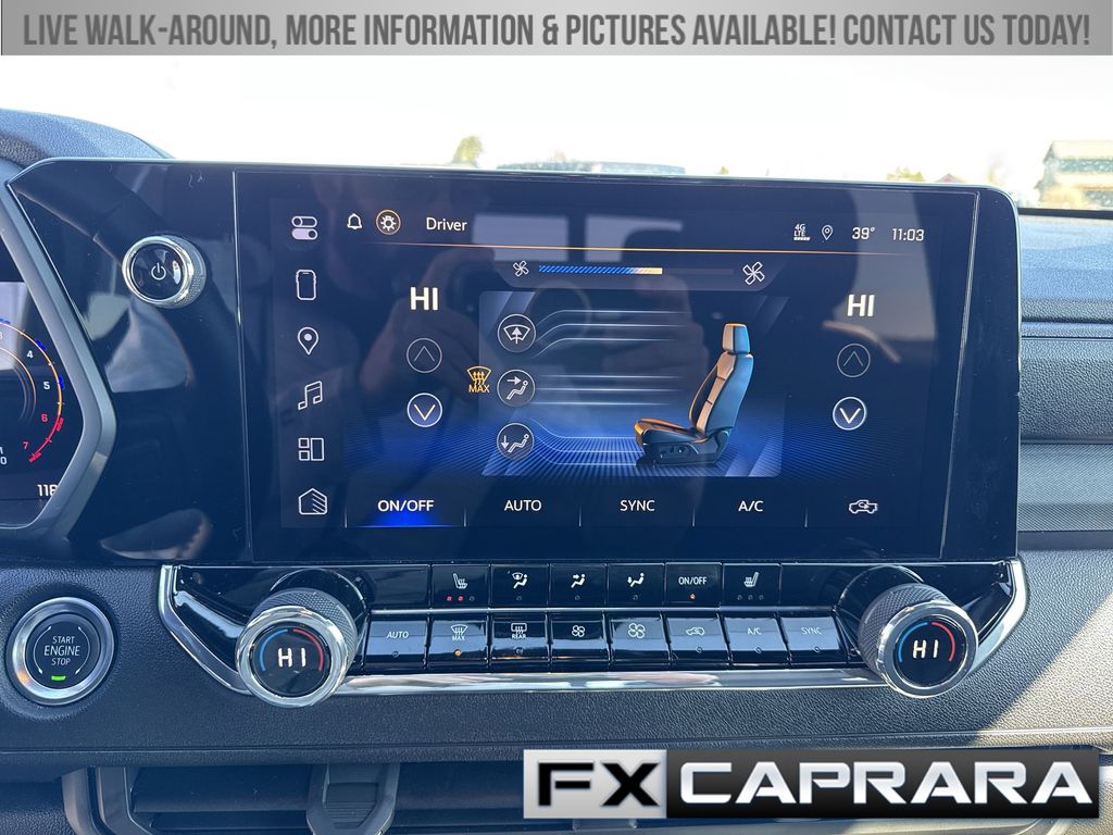 4WD, 3 Years SiriusXM, 3.42 Rear Axle Ratio, 4-Spoke Wrapped Steering Wheel, 4-Way Manual Passenger Seat Adjuster, 4-Wheel Disc Brakes, 6 Speakers, 6-Speaker Audio System Feature, 6-Way Manual Driver Seat Adjuster, 8-Way Power Driver Seat Adjuster, ABS brakes, Adaptive Cruise Control, Air Conditioning, Alloy wheels, AM/FM radio: SiriusXM, Apple CarPlay/Android Auto, Auto High-beam Headlights, Automatic Emergency Braking, Automatic temperature control, Black Spray-On Bedliner w/Chevrolet Logo, Brake assist, Chevy Safety Assist, Cloth Seat Trim, Compass, Delay-off headlights, Driver door bin, Driver vanity mirror, Dual front impact airbags, Dual front side impact airbags, Electronic Stability Control, Emergency communication system: OnStar, Evotex Seat Trim, Following Distance Indicator, Forward Collision Alert, Front anti-roll bar, Front Bucket Seats, Front Center Armrest, Front dual zone A/C, Front License Plate Kit, Front Pedestrian & Bicyclist Braking, Front wheel independent suspension, HD Surround Vision, Heated door mirrors, Heated Driver & Front Passenger Seats, Heated Steering Wheel, Illuminated entry, IntelliBeam Automatic High Beam On/Off, Lane Keep Assist w/Lane Departure Warning, Low tire pressure warning, Navigation System, Occupant sensing airbag, Outside temperature display, Overhead airbag, Overhead console, Panic alarm, Passenger door bin, Passenger vanity mirror, Power door mirrors, Power Driver Lumbar Control Seat Adjuster, Power steering, Power windows, Preferred Equipment Group 0TR, Radio data system, Radio: 11.3" Diagonal Advanced Color LCD Display, Rear Pedestrian Alert, Rear reading lights, Rear step bumper, Rear window defroster, Remote keyless entry, Remote Vehicle Starter System, Security system, SiriusXM Trial Subscription, Speed control, Speed-sensing steering, Split folding rear seat, Steering Wheel Mounted Audio Controls, Steering wheel mounted audio controls, Tachometer, Technology Package, Tilt steering wheel, Traction control, Trail Boss Convenience Package II, Trip computer, Variably intermittent wipers, Wheels: 18" x 8.5" Black High Gloss Aluminum, Wireless Phone Charging, Wireless Phone Projection, 4WD.