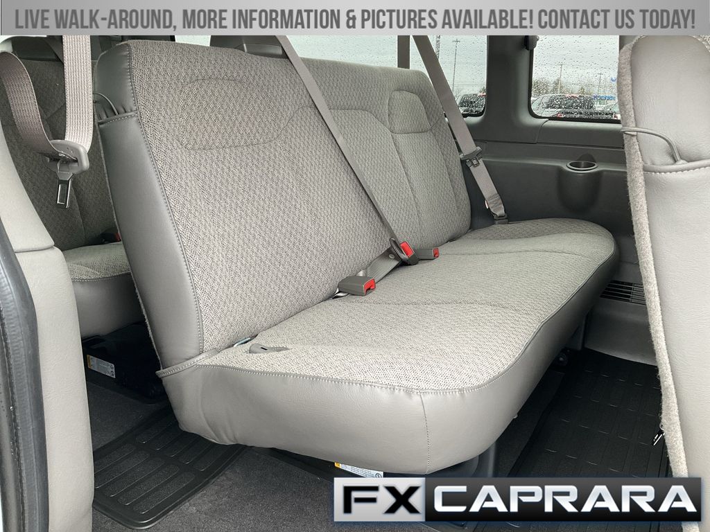 12-Passenger Seating (2-3-3-4 Seating Config), 16" x 6.5" Steel Wheels, 2 Speakers, 3.42 Rear Axle Ratio, 3rd row seats: bench, 4-Wheel Disc Brakes, 4th-Row Bench Seat, ABS brakes, Air Conditioning, AM/FM radio, AM/FM Stereo w/MP3 Player, Bumpers: chrome, Chrome Appearance Package, Chrome Grille, Compass, Custom Cloth Seat Trim, Delay-off headlights, Deluxe Console w/Swing Out Storage Bin, Driver door bin, Driver vanity mirror, Driver's Seat Mounted Armrest, Dual front impact airbags, Dual front side impact airbags, Electronic Stability Control, Forward Collision Alert, Front & Rear Chrome Bumpers w/Step-Pad, Front anti-roll bar, Front Bucket Seats, Front reading lights, Front wheel independent suspension, Full-Floor Color-Keyed Carpeting, Fully automatic headlights, Heated door mirrors, Illuminated entry, Lane Departure Warning System, Low tire pressure warning, Occupant sensing airbag, Overhead airbag, Panic alarm, Passenger cancellable airbag, Passenger door bin, Passenger seat mounted armrest, Passenger vanity mirror, Power door mirrors, Power steering, Power windows, Rear air conditioning, Rear reading lights, Reclining Front Bucket Seats w/Inboard Armrests, Remote Keyless Entry, Remote keyless entry, Security system, Speed control, Tachometer, Theft Alarm Notification, Tilt steering wheel, Traction control, Trip computer, Variably intermittent wipers, Voltmeter, Wheel Trim w/Chrome Center Caps.
