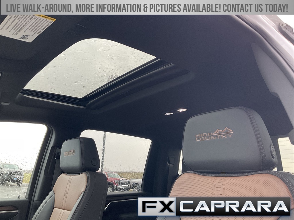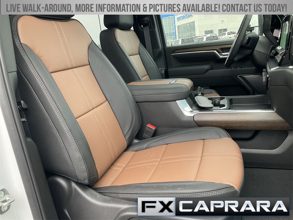 10-Speed Automatic, 4WD, Jet Black/Umber Leather, 10-Way Power Driver Seat Adjuster w/Lumbar, 10-Way Power Passenger Seat Adjuster w/Lumbar, 120-Volt Bed Mounted Power Outlet, 120-Volt Interior Power Outlet, 170 Amp Alternator, 220 Amp Alternator, 3 Years SiriusXM, 4-Wheel Disc Brakes, 6" Rectangular Chromed Tubular Assist Steps, 7 Speakers, ABS brakes, Air Conditioning, Alloy wheels, AM/FM radio: SiriusXM with 360L, Apple CarPlay/Android Auto, Auto High-beam Headlights, Auto-dimming door mirrors, Auto-Dimming Inside Rear-View Mirror, Auto-Dimming Inside Rearview Mirror w/Camera, Auto-dimming Rear-View mirror, Automatic temperature control, Bed View Camera w/2 Trailer Camera Provisions, Bluetooth® For Phone, Bodyside moldings, Bose Premium 7-Speaker Sound System, Brake assist, Bumpers: body-color, Chevrolet Connected Access Capable, Chevytec Spray-On Black Bedliner, Chrome Door Handles, Chrome Mirror Caps, Color-Keyed Carpeting Floor Covering, Compass, Compass Located In Instrument Cluster, Deep-Tinted Glass, Delay-off headlights, Driver door bin, Driver Memory, Driver vanity mirror, Dual front impact airbags, Dual front side impact airbags, Durabed Pickup Bed, Electric Rear-Window Defogger, Electronic Stability Control, Engine Block Heater, Exhaust Brake, Floor-Mounted Center Console, Front anti-roll bar, Front Bucket Seats, Front Carpeted Floor Mats, Front Center Armrest, Front Chrome Recovery Hooks, Front dual zone A/C, Front fog lights, Front LED Fog Lamps, Front Rain-Sensing Wipers, Front reading lights, Front wheel independent suspension, Fully automatic headlights, Garage door transmitter, Genuine wood console insert, Genuine wood dashboard insert, Genuine wood door panel insert, Gooseneck/5th Wheel Prep Package, Heated 2nd Row Outboard Seats, Heated door mirrors, Heated Driver & Front Outboard Passenger Seats, Heated front seats, Heated rear seats, Heated Steering Wheel, Heated steering wheel, Heavy-Duty 80 Amp-Hr Battery, High Country Premium Package, High Idle Switch, Hitch Guidance w/Hitch View, Illuminated entry, In-Vehicle Trailering App System, Keyless Open & Start, LED Cargo Area Lighting, LED Smoked Amber Roof Marker Lamps, Low tire pressure warning, Manual Tilt-Wheel/Telescoping Steering Column, Memory seat, Multicolor 15" Diagonal Head-Up Display, Occupant sensing airbag, OnStar Services Capable, Outside temperature display, Overhead airbag, Overhead console, Panic alarm, Passenger door bin, Passenger vanity mirror, Perforated Leather Seating Surfaces, Polished Exhaust Tip, Power Door Locks, Power door mirrors, Power driver seat, Power Front Windows w/Driver Express Up/Down, Power Front Windows w/Passenger Express Up/Down, Power passenger seat, Power Rear Windows w/Express Down, Power Sliding Rear Window w/Defogger, Power steering, Power Sunroof, Power Tailgate, Power windows, Preferred Equipment Group 3LZ, Premium audio system: Chevrolet Infotainment 3 Premium, Push Button Start, Radio: Chevrolet Infotainment 3 Premium System, Rain sensing wipers, Rear Carpeted Floor Mats, Rear Cross Traffic Alert, Rear reading lights, Rear seat center armrest, Rear step bumper, Rear Wheelhouse Liners, Rear window defroster, Remote keyless entry, Remote Vehicle Starter System, Security system, SiriusXM w/360L Trial Subscription, Speed control, Speed-sensing steering, Split folding rear seat, Standard Tailgate, Steering Wheel Audio Controls, Steering whee