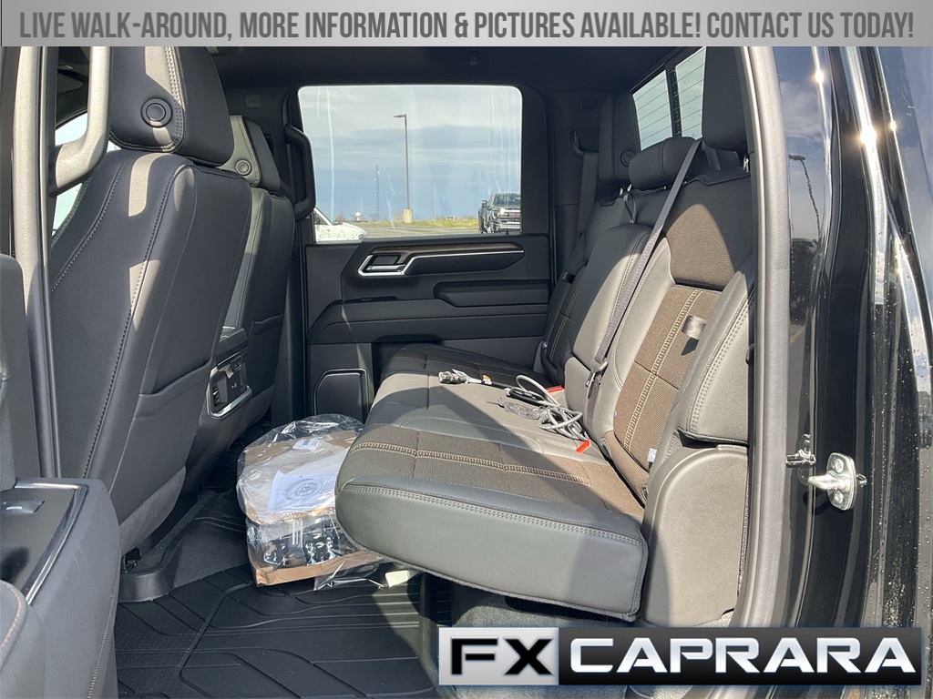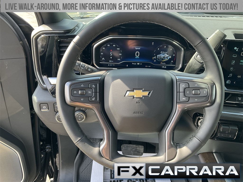 10-Speed Automatic, 4WD, Black Leather, 10-Way Power Driver Seat Adjuster w/Lumbar, 10-Way Power Passenger Seat Adjuster w/Lumbar, 120-Volt Bed Mounted Power Outlet, 120-Volt Interior Power Outlet, 170 Amp Alternator, 220 Amp Alternator, 4-Wheel Disc Brakes, 6" Rectangular Chromed Tubular Assist Steps, 7 Speakers, ABS brakes, Air Conditioning, All-Weather Floor Liners (LPO), Alloy wheels, AM/FM radio: SiriusXM with 360L, Apple CarPlay/Android Auto, Auto High-beam Headlights, Auto-dimming door mirrors, Auto-Dimming Inside Rear-View Mirror, Auto-Dimming Inside Rearview Mirror w/Camera, Auto-dimming Rear-View mirror, Automatic temperature control, Bed View Camera w/2 Trailer Camera Provisions, Black Name Plates (LPO), Bluetooth® For Phone, Bodyside moldings, Bose Premium 7-Speaker Sound System, Brake assist, Bumpers: body-color, Chevrolet Connected Access Capable, Chevytec Spray-On Black Bedliner, Chrome Door Handles, Chrome Mirror Caps, Color-Keyed Carpeting Floor Covering, Compass, Compass Located In Instrument Cluster, Dark Essentials Package (LPO), Deep-Tinted Glass, Delay-off headlights, Driver door bin, Driver Memory, Driver vanity mirror, Dual front impact airbags, Dual front side impact airbags, Durabed Pickup Bed, Electric Rear-Window Defogger, Electronic Stability Control, Engine Block Heater, Exhaust Brake, EZ Lift Power Lock & Release Tailgate, Floor-Mounted Center Console, Front anti-roll bar, Front Black Bowtie Emblem (LPO), Front Bucket Seats, Front Carpeted Floor Mats, Front Center Armrest, Front Chrome Recovery Hooks, Front dual zone A/C, Front fog lights, Front LED Fog Lamps, Front Rain-Sensing Wipers, Front reading lights, Front wheel independent suspension, Fully automatic headlights, Garage door transmitter, Genuine wood console insert, Genuine wood dashboard insert, Genuine wood door panel insert, Gooseneck/5th Wheel Prep Package, Heated 2nd Row Outboard Seats, Heated door mirrors, Heated Driver & Front Outboard Passenger Seats, Heated front seats, Heated rear seats, Heated Steering Wheel, Heated steering wheel, Heavy-Duty 80 Amp-Hr Battery, Hitch Guidance w/Hitch View, Hitch Package (LPO), Illuminated entry, In-Vehicle Trailering App System, Keyless Open & Start, LED Cargo Area Lighting, LED Smoked Amber Roof Marker Lamps, Low tire pressure warning, Manual Tilt-Wheel/Telescoping Steering Column, Memory seat, Multi-Flex Tailgate, Multicolor 15" Diagonal Head-Up Display, Occupant sensing airbag, OnStar Services Capable, Outside temperature display, Overhead airbag, Overhead console, Panic alarm, Passenger door bin, Passenger vanity mirror, Perforated Leather Seating Surfaces, Polished Exhaust Tip, Power Door Locks, Power door mirrors, Power driver seat, Power Front Windows w/Driver Express Up/Down, Power Front Windows w/Passenger Express Up/Down, Power passenger seat, Power Rear Windows w/Express Down, Power Sliding Rear Window w/Defogger, Power steering, Power Sunroof, Power Tailgate, Power windows, Power-Retractable Assist Steps, Preferred Equipment Group 3LZ, Premium audio system: Chevrolet Infotainment 3 Premium, Push Button Start, Radio: Chevrolet Infotainment 3 Premium System, Rain sensing wipers, Rear Carpeted Floor Mats, Rear Cross Traffic Alert, Rear reading lights, Rear seat center armrest, Rear step bumper, Rear Wheelhouse Liners, Rear window defroster, Remote keyless entry, Remote Vehicle Starter System, Security system, SiriusXM w/360L Trial S