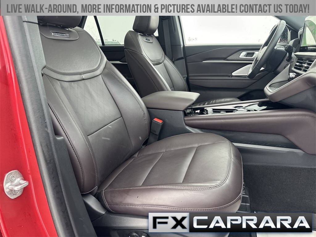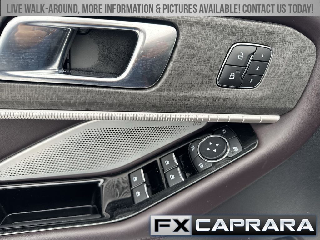 4WD, 14 Speakers, 2nd Row 35/30/35 Bench w/E-Z Entry & Armrest, 3.58 Non-Limited Slip Rear Axle, 3rd row seats: bench, 4-Wheel Disc Brakes, ABS brakes, ActiveX Trimmed Sport Captain's Chairs, Air Conditioning, Alloy wheels, AM/FM radio: SiriusXM with 360L, Apple CarPlay/Android Auto, Auto High-beam Headlights, Auto-dimming door mirrors, Auto-dimming Rear-View mirror, Automatic temperature control, Brake assist, Bumpers: body-color, Compass, Delay-off headlights, Driver door bin, Driver vanity mirror, Dual front impact airbags, Dual front side impact airbags, Electronic Stability Control, Emergency communication system: 911 Assist, Equipment Group 600A Standard Package, Exterior Parking Camera Rear, Ford BlueCruise Equipped (1-Year Plan) (DISC), Four wheel independent suspension, Front & 2nd Rows Floor Liners w/Carpet Floor Mats, Front anti-roll bar, Front Bucket Seats, Front Center Armrest, Front dual zone A/C, Front fog lights, Front License Plate Bracket, Front reading lights, Fully automatic headlights, Garage door transmitter, Heated door mirrors, Heated front seats, Heated rear seats, Heated steering wheel, Illuminated entry, Internet access capable: FordPass Connect 5G, Knee airbag, Leather steering wheel, Low tire pressure warning, Memory seat, Navigation System, Occupant sensing airbag, Outside temperature display, Overhead airbag, Overhead console, Panic alarm, Passenger door bin, Passenger vanity mirror, Power door mirrors, Power driver seat, Power Liftgate, Power moonroof, Power passenger seat, Power steering, Power windows, Radio data system, Radio: B&O Sound System by Bang & Olufsen w/HD, Rain sensing wipers, Rear air conditioning, Rear anti-roll bar, Rear reading lights, Rear window defroster, Rear window wiper, Remote keyless entry, Security system, Speed control, Speed-sensing steering, Speed-Sensitive Wipers, Split folding rear seat, Spoiler, Steering wheel mounted audio controls, Tachometer, Telescoping steering wheel, Tilt steering wheel, Traction control, Trip computer, Turn signal indicator mirrors, Variably intermittent wipers, Ventilated front seats, Wheels: 20" Luster Nickel-Painted Aluminum, 4WD.
