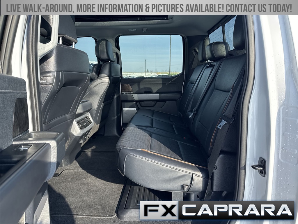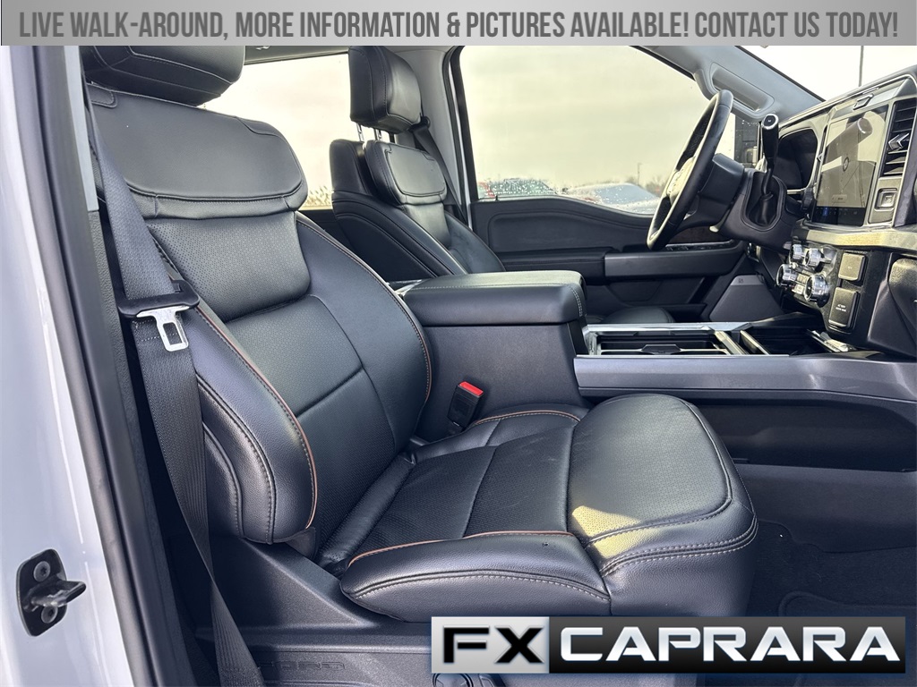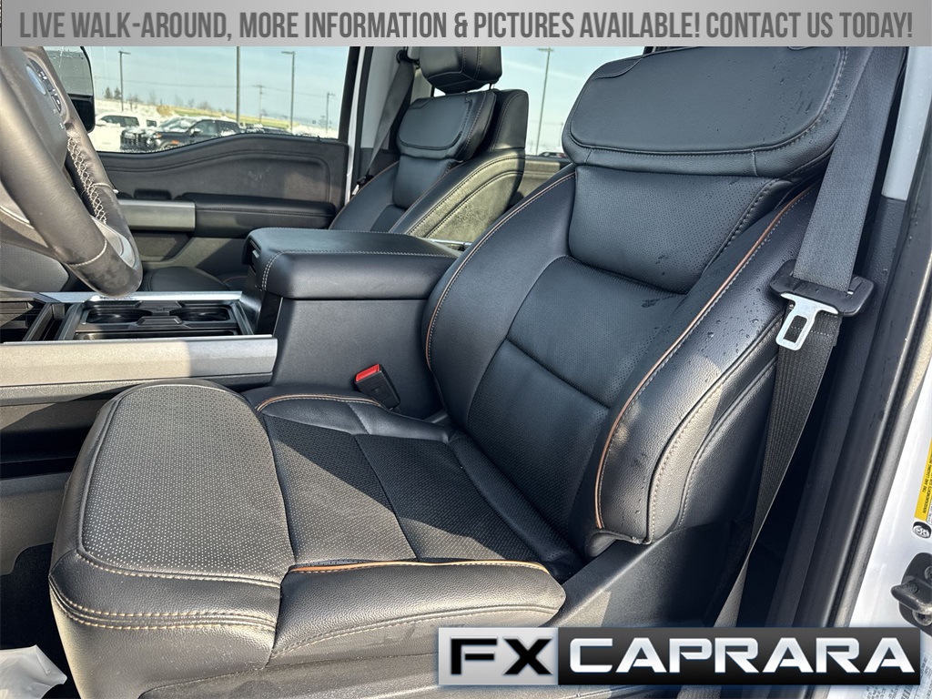 4WD, 3.73 Axle Ratio, 4-Wheel Disc Brakes, 8 Speakers, ABS brakes, Adjustable pedals, Air Conditioning, Alloy wheels, AM/FM radio: SiriusXM with 360L, Auto High-beam Headlights, Auto-dimming Rear-View mirror, Automatic temperature control, BLIS with Cross-Traffic Alert, Brake assist, Bumpers: chrome, Compass, Delay-off headlights, Driver door bin, Driver vanity mirror, Dual front impact airbags, Dual front side impact airbags, Electronic Stability Control, Emergency communication system: SYNC 4 911 Assist, Flow-Through Console, Front ActiveX Trimmed 40/Console/40 Seats, Front anti-roll bar, Front Bucket Seats, Front Center Armrest, Front dual zone A/C, Front fog lights, Front reading lights, Fully automatic headlights, Garage door transmitter, GVWR: F-250 >10K Package, Heated door mirrors, Heated front seats, Heated rear seats, Heated steering wheel, Illuminated entry, Internet access capable: FordPass Connect 5G, Low tire pressure warning, Memory seat, Navigation System, Outside temperature display, Overhead airbag, Overhead console, Panic alarm, Passenger door bin, Passenger vanity mirror, Pedal memory, Power door mirrors, Power driver seat, Power passenger seat, Power steering, Power windows, Privacy Glass, Radio: B&O Sound System by Bang and Olufsen, Rain sensing wipers, Rear Parking Sensors, Rear reading lights, Rear seat center armrest, Rear step bumper, Rear window defroster, Remote keyless entry, Security system, SiriusXM Radio with 360L, Speed control, Split folding rear seat, Steering wheel mounted audio controls, SYNC 4 with Enhanced Voice Recognition, Tachometer, Telescoping steering wheel, Tilt steering wheel, Traction control, Trip computer, Turn signal indicator mirrors, Variably intermittent wipers, Ventilated front seats, Wheels: 18" Bright Machined and Carbonized Gray Aluminum, 4WD.