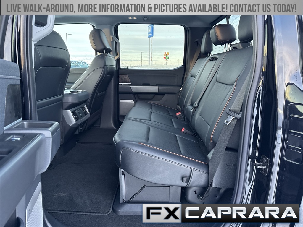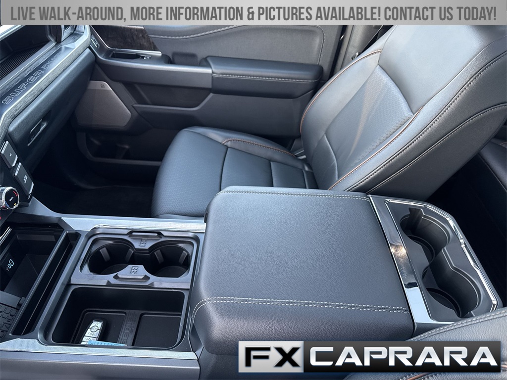 4WD, 3.73 Axle Ratio, 4-Wheel Disc Brakes, 8 Speakers, ABS brakes, Adjustable pedals, Air Conditioning, Alloy wheels, AM/FM radio: SiriusXM with 360L, Auto High-beam Headlights, Auto-dimming Rear-View mirror, Automatic temperature control, BLIS with Cross-Traffic Alert, Brake assist, Bumpers: chrome, Compass, Delay-off headlights, Driver door bin, Driver vanity mirror, Dual front impact airbags, Dual front side impact airbags, Electronic Stability Control, Emergency communication system: SYNC 4 911 Assist, Flow-Through Console, Front ActiveX Trimmed 40/Console/40 Seats, Front anti-roll bar, Front Bucket Seats, Front Center Armrest, Front dual zone A/C, Front fog lights, Front reading lights, Fully automatic headlights, Garage door transmitter, GVWR: F-250 >10K Package, Heated door mirrors, Heated front seats, Heated rear seats, Heated steering wheel, Illuminated entry, Internet access capable: FordPass Connect 5G, Low tire pressure warning, Memory seat, Navigation System, Outside temperature display, Overhead airbag, Overhead console, Panic alarm, Passenger door bin, Passenger vanity mirror, Pedal memory, Power door mirrors, Power driver seat, Power passenger seat, Power steering, Power windows, Privacy Glass, Radio: B&O Sound System by Bang and Olufsen, Rain sensing wipers, Rear Parking Sensors, Rear reading lights, Rear seat center armrest, Rear step bumper, Rear window defroster, Remote keyless entry, Security system, SiriusXM Radio with 360L, Speed control, Split folding rear seat, Steering wheel mounted audio controls, SYNC 4 with Enhanced Voice Recognition, Tachometer, Telescoping steering wheel, Tilt steering wheel, Traction control, Trip computer, Turn signal indicator mirrors, Variably intermittent wipers, Ventilated front seats, Wheels: 18" Bright Machined and Carbonized Gray Aluminum, 4WD.