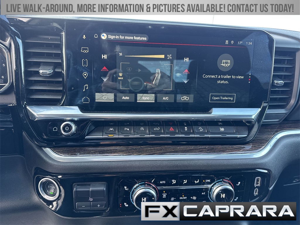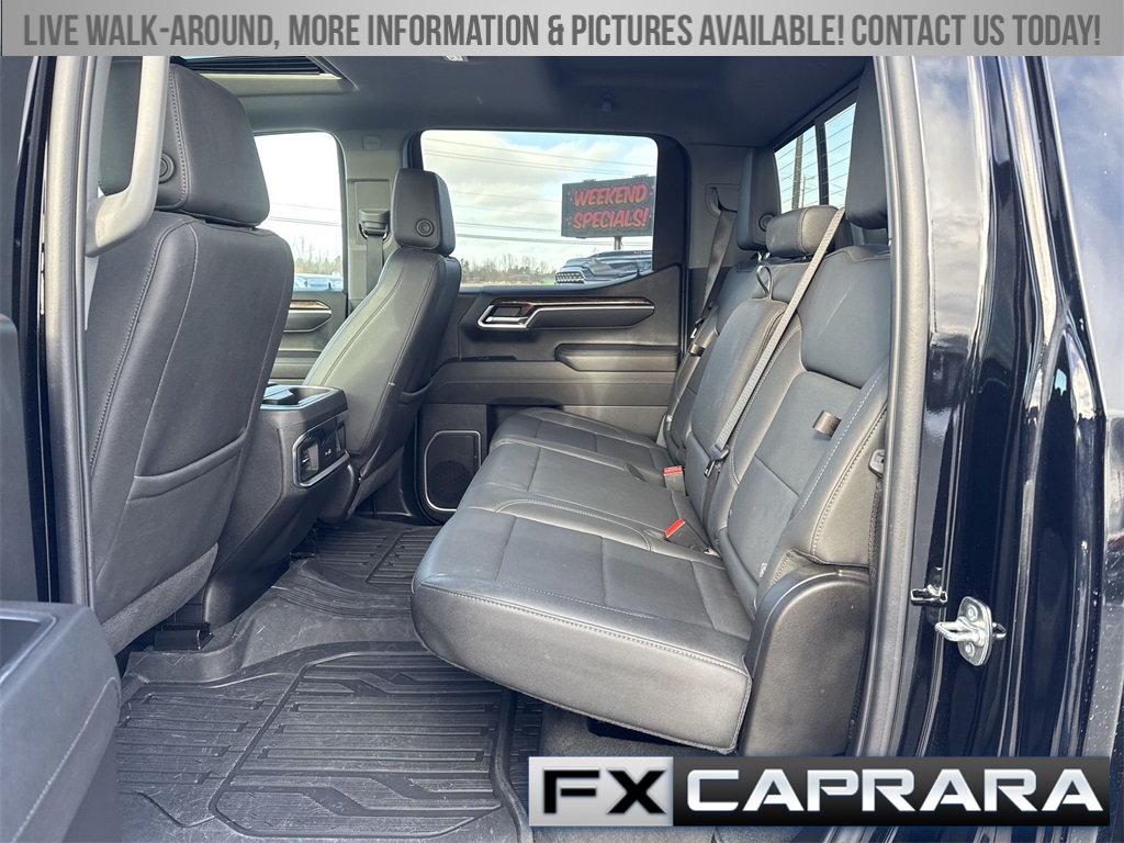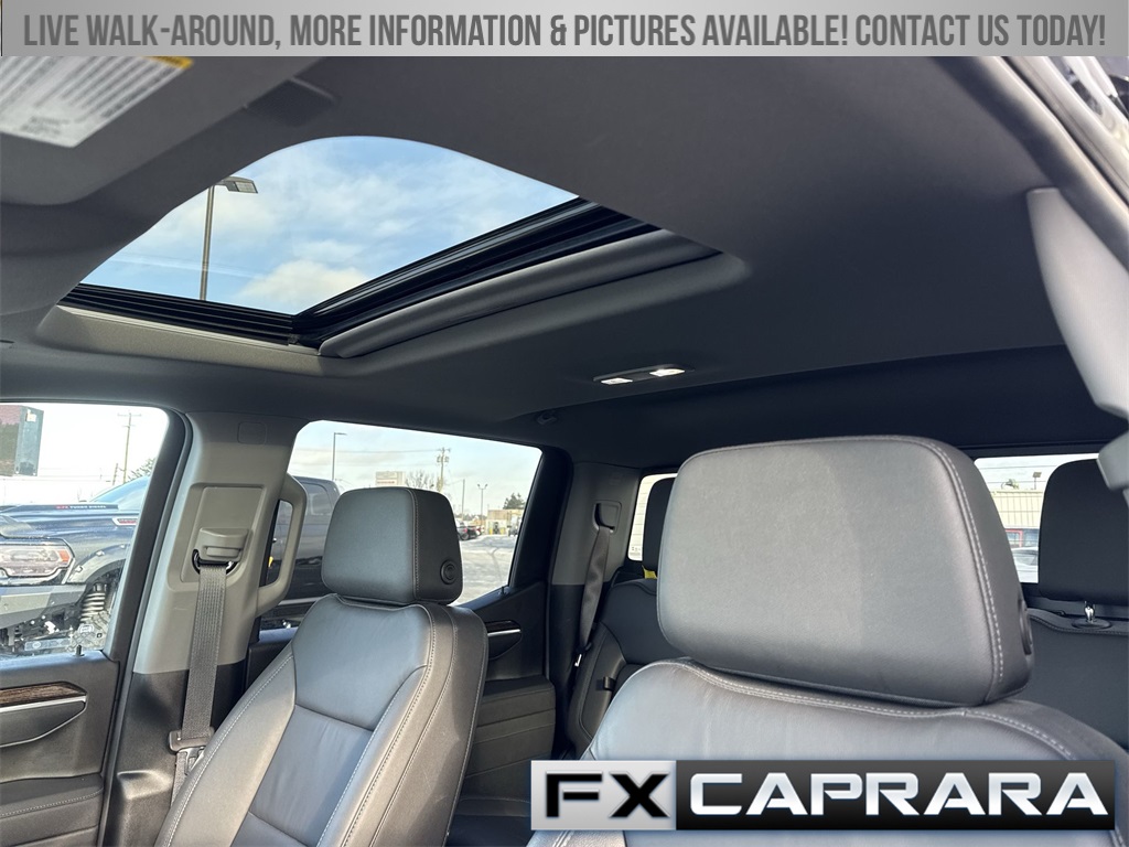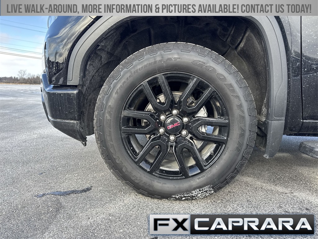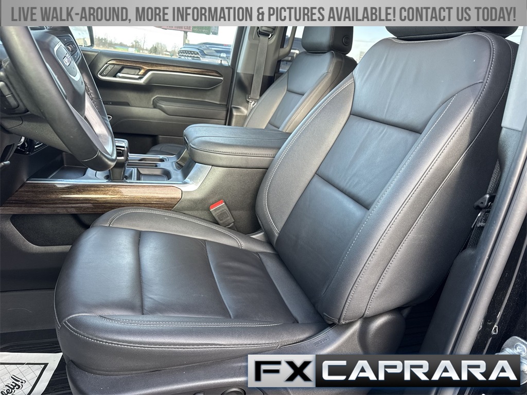10-Speed Automatic, 4WD, Black Leather, 10-Way Power Driver Seat Adjuster w/Lumbar, 120-Volt Bed Mounted Power Outlet, 120-Volt Interior Power Outlet, 170 Amp Alternator, 2 Charge/Data USB Ports, 2 Charge/Data USB Ports Inside Center Console, 2 Type-C Charge-Only Rear USB Ports, 220 Amp Alternator, 4-Way Manual Passenger Seat Adjuster, 4-Wheel Disc Brakes, 6 Speakers, 6-Speaker Audio System Feature, 6" Rectangular Black Tubular Assist Steps (LPO), ABS brakes, Adaptive Cruise Control, Air Conditioning, All-Weather Floor Liner (LPO), Alloy wheels, AM/FM radio: SiriusXM with 360L, Apple CarPlay/Android Auto, Auto High-beam Headlights, Auto-Locking Rear Differential, Automatic Emergency Braking, Automatic temperature control, Auxiliary External Transmission Oil Cooler, Body Color Header w/Gloss Black Mesh Grille Bars, Brake assist, Buckle to Drive, Bumpers: body-color, Cloth Rear Seat w/Storage Package, Cloth Seat Trim, Color-Keyed Carpeting Floor Covering, Compass, Deep-Tinted Glass, Delay-off headlights, Driver door bin, Driver vanity mirror, Dual Exhaust System, Dual front impact airbags, Dual front side impact airbags, Electric Rear-Window Defogger, Electronic Precision Shift, Electronic Stability Control, Elevation Premium Package, Emergency communication system: OnStar, External Engine Oil Cooling, Floor-Mounted Center Console, Following Distance Indicator, Forward Collision Alert, Front 40/20/40 Split-Bench Seat, Front anti-roll bar, Front Bucket Seats, Front Center Armrest w/Storage, Front dual zone A/C, Front fog lights, Front Frame-Mounted Black Recovery Hooks, Front Pedestrian Braking, Front reading lights, Front Rubberized-Vinyl Floor Mats, Front wheel independent suspension, Fully automatic headlights, Genuine wood dashboard insert, HD Rear Vision Camera, HD Surround Vision, Heated door mirrors, Heated Driver & Front Outboard Passenger Seating, Heated front seats, Heated steering wheel, Heavy-Duty Air Filter, High Capacity Suspension Package, High Gloss Black Mirror Caps, Hill Descent Control, Hitch Guidance, Hitch View, Illuminated entry, In-Vehicle Trailering System App, Integrated Trailer Brake Controller, IntelliBeam Automatic High Beam On/Off, Keyless Open & Start, Lane Keep Assist w/Lane Departure Warning, Leather-Appointed Seat Trim, LED Cargo Area Lighting, Low tire pressure warning, Manual Tilt-Wheel & Telescoping Steering Column, Navigation System, Occupant sensing airbag, Off-Road Suspension, OnStar Services Capable, Outside temperature display, Overhead airbag, Overhead console, Panic alarm, Passenger door bin, Passenger vanity mirror, Perimeter Lighting, Power Door Locks, Power door mirrors, Power driver seat, Power Front Windows w/Driver Express Up/Down, Power Front Windows w/Passenger Express Down, Power Rear Windows w/Express Down, Power Sliding Rear Window w/Rear Defogger, Power steering, Power Sunroof, Power windows, Preferred Equipment Group 3SB, Preferred Package, Premium Bose 7-Speaker Sound System, Push Button Start, Radio data system, Radio: Premium GMC Infotainment Audio System, Rear Cross Traffic Braking, Rear Pedestrian Detection, Rear reading lights, Rear Rubberized-Vinyl Floor Mats, Rear seat center armrest, Rear step bumper, Rear Wheelhouse Liners, Rear window defroster, Remote keyless entry, Remote Vehicle Starter System, Security system, Sierra Safety Plus Package, SiriusXM w/360L Trial Subscription, Speed control, Speed-sensing steering, Split folding rear seat, Spray-On Pickup Bedliner w/GMC Logo, S