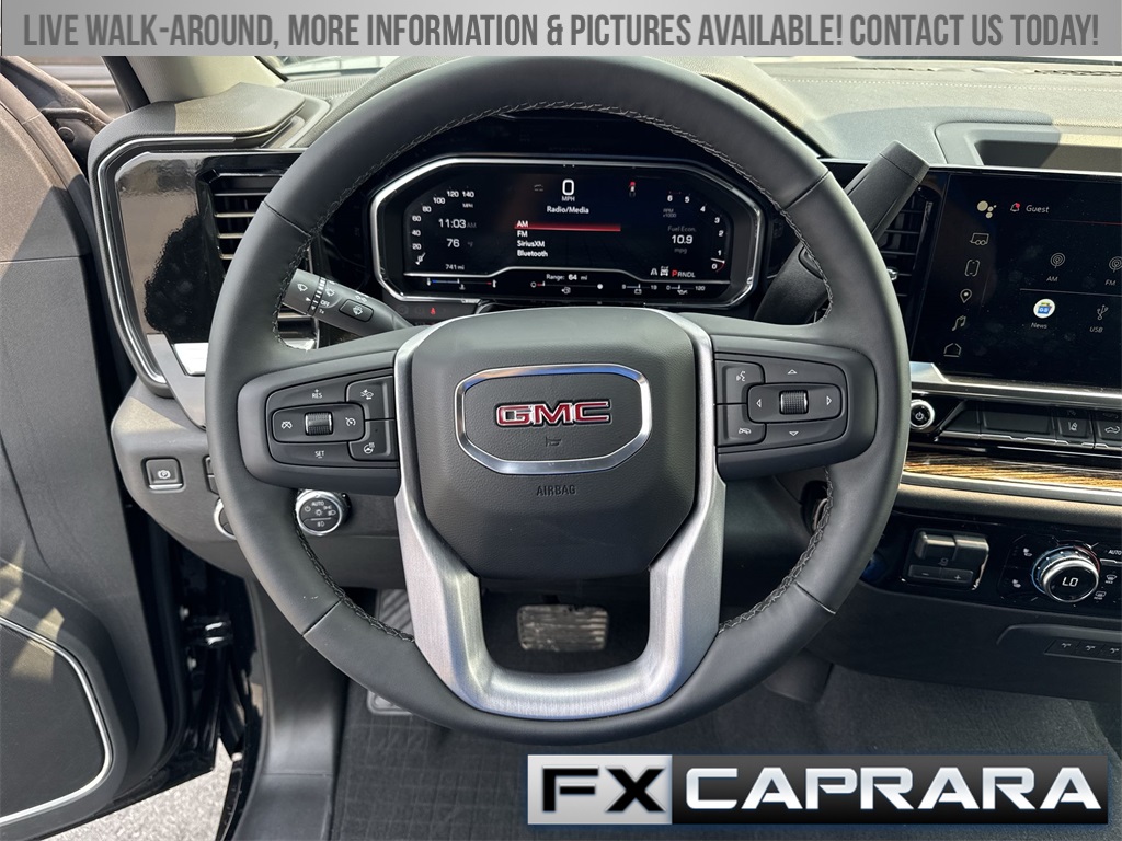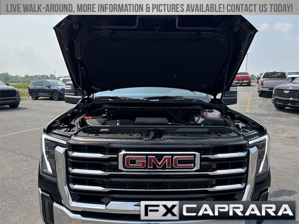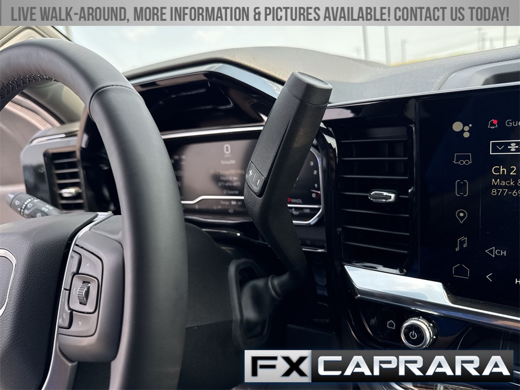 10-Speed Automatic, 4WD, Black Cloth, 10-Way Power Driver Seat Adjuster w/Lumbar, 120-Volt Bed Mounted Power Outlet, 120-Volt Instrument Panel Power Outlet, 2 Charge-Only Rear USB Ports, 2 Charge/Data USB Ports, 2-Speed Electronic Shift Transfer Case, 220 Amp Alternator, 3.73 Rear Axle Ratio, 4-Way Manual Driver Seat Adjuster, 4-Way Manual Passenger Seat Adjuster, 4-Wheel Disc Brakes, 6 Speakers, 6-Speaker Audio System Feature, 6" Rectangular Chromed Tubular Assist Steps (LPO), ABS brakes, Adaptive Cruise Control, Air Conditioning, All-Weather Floor Liners (LPO), AM/FM radio: SiriusXM with 360L, Auto High-beam Headlights, Auto-Dimming Inside Rear-View Mirror, Automatic Emergency Braking, Brake assist, Buckle to Drive, Bumpers: chrome, Chrome Surround Grille w/Chrome Insert Bars, Cloth Rear Seat w/Storage Package, Cloth Seat Trim, Compass, Deep-Tinted Glass, Delay-off headlights, Driver door bin, Driver vanity mirror, Dual front impact airbags, Dual front side impact airbags, Dual-Zone Automatic Climate Control, Electric Rear-Window Defogger, Electronic Stability Control, Exterior Parking Camera Rear, Following Distance Indicator, Forward Collision Alert, Front 40/20/40 Split-Bench Seats w/Lockable Storage, Front anti-roll bar, Front Center Armrest w/Storage, Front Pedestrian Braking, Front reading lights, Front wheel independent suspension, Fully automatic headlights, GMC MultiPro Tailgate, GMC Premium 13.4" Diagonal Information Display, Gooseneck/5th Wheel Prep Package, Heated door mirrors, Heated Driver & Front Outboard Passenger Seats, Heated Steering Wheel, Heavy-Duty 80 Amp-Hr Battery, Hitch Guidance w/Hitch View, Hitch Package (LPO), Illuminated entry, In-Vehicle Trailering App, IntelliBeam Automatic High Beam On/Off, Keyless Open & Start, Lane Departure Warning System, LED Cargo Area Lighting, LED Fog Lamps, Low tire pressure warning, Manual Tilt-Wheel/Telescoping Steering Column, Occupant sensing airbag, Outside temperature display, Overhead airbag, Overhead console, Panic alarm, Passenger door bin, Passenger vanity mirror, Perimeter Lighting, Pickup Bed, Power door mirrors, Power Sliding Rear Window w/Defogger, Power steering, Power windows, Power-Adjustable Black Outside Mirrors, Preferred Equipment Group 3SA, Preferred Package, Push Button Start, Radio: AM/FM w/Premium GMC Infotainment System, Rear reading lights, Rear step bumper, Remote keyless entry, Remote Start Package, Remote Vehicle Starter System, SiriusXM w/360L Trial Subscription, SLE Convenience Package, SLE Heated Package, SLE Value Package, Snow Plow Prep/Camper Package, Speed control, Split folding rear seat, Spray-On Pickup Bedliner w/GMC Logo, Steering Wheel Audio Controls, Steering wheel mounted audio controls, Suspension Package, Tachometer, Tilt steering wheel, Traction control, Trip computer, Turn signal indicator mirrors, Unauthorized Entry Theft-Deterrent System, Universal Home Remote, Upfitter Switch Kit (5), Variably intermittent wipers, Voltmeter, Wireless Phone Projection, 10-Speed Automatic, 4WD, Black Cloth.
