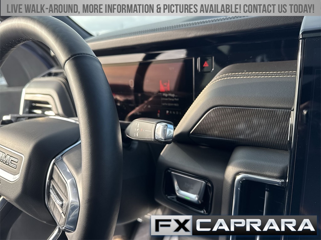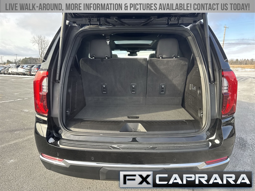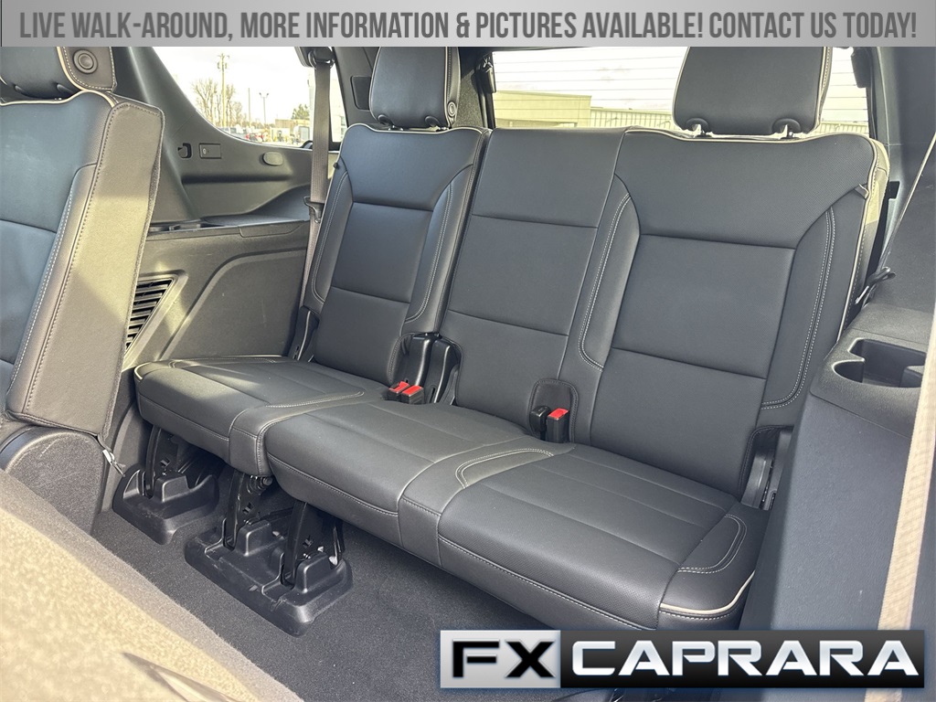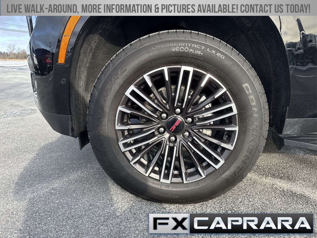 4WD, 10 Speakers, 3.23 Rear Axle Ratio, 3rd row seats: split-bench, 4-Wheel Disc Brakes, ABS brakes, Air Conditioning, Alloy wheels, AM/FM radio: SiriusXM with 360L, Apple CarPlay/Android Auto, Audio memory, Auto High-beam Headlights, Auto-dimming door mirrors, Auto-dimming Rear-View mirror, Automatic temperature control, Bodyside moldings, Bose 10-Speaker Surround with CenterPoint, Brake assist, Bumpers: body-color, Compass, CoreTech/Perforated Leather-Appointed Seating, Delay-off headlights, Driver door bin, Driver vanity mirror, Dual front impact airbags, Dual front side impact airbags, Electronic Stability Control, Emergency communication system: OnStar and GMC connected services capable, Exterior Parking Camera Rear, Four wheel independent suspension, Front anti-roll bar, Front Bucket Seats, Front Center Armrest, Front dual zone A/C, Front fog lights, Front reading lights, Fully automatic headlights, Garage door transmitter, Heated door mirrors, Heated Driver and Front Passenger Seats, Heated front seats, Heated rear seats, Heated steering wheel, Illuminated entry, Low tire pressure warning, Memory seat, Navigation system: GMC Connected Navigation, Occupant sensing airbag, Outside temperature display, Overhead airbag, Overhead console, Panic alarm, Passenger door bin, Passenger vanity mirror, Power door mirrors, Power driver seat, Power Liftgate, Power passenger seat, Power steering, Power windows, Premium Smooth Ride Suspension, Radio: 16.8" Diagonal Premium GMC Infotainment System, Rain sensing wipers, Rear air conditioning, Rear anti-roll bar, Rear reading lights, Rear seat center armrest, Rear window defroster, Rear window wiper, Remote keyless entry, Security system, SiriusXM with 360L, Speed control, Speed-sensing steering, Split folding rear seat, Spoiler, Steering wheel mounted audio controls, Tachometer, Telescoping steering wheel, Tilt steering wheel, Traction control, Trip computer, Turn signal indicator mirrors, Variably intermittent wipers, Voltmeter, Wheels: 20" x 9" Machined and Painted, 4WD.