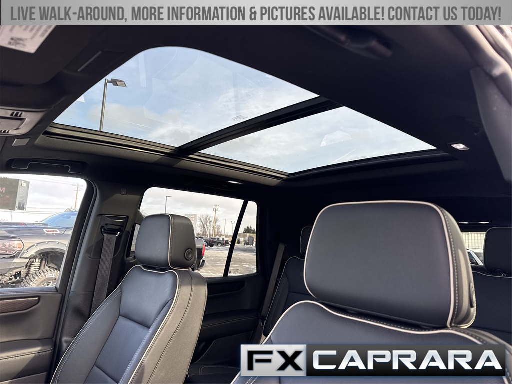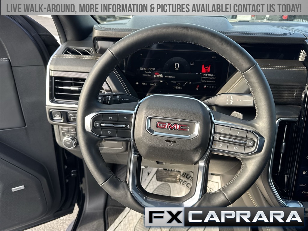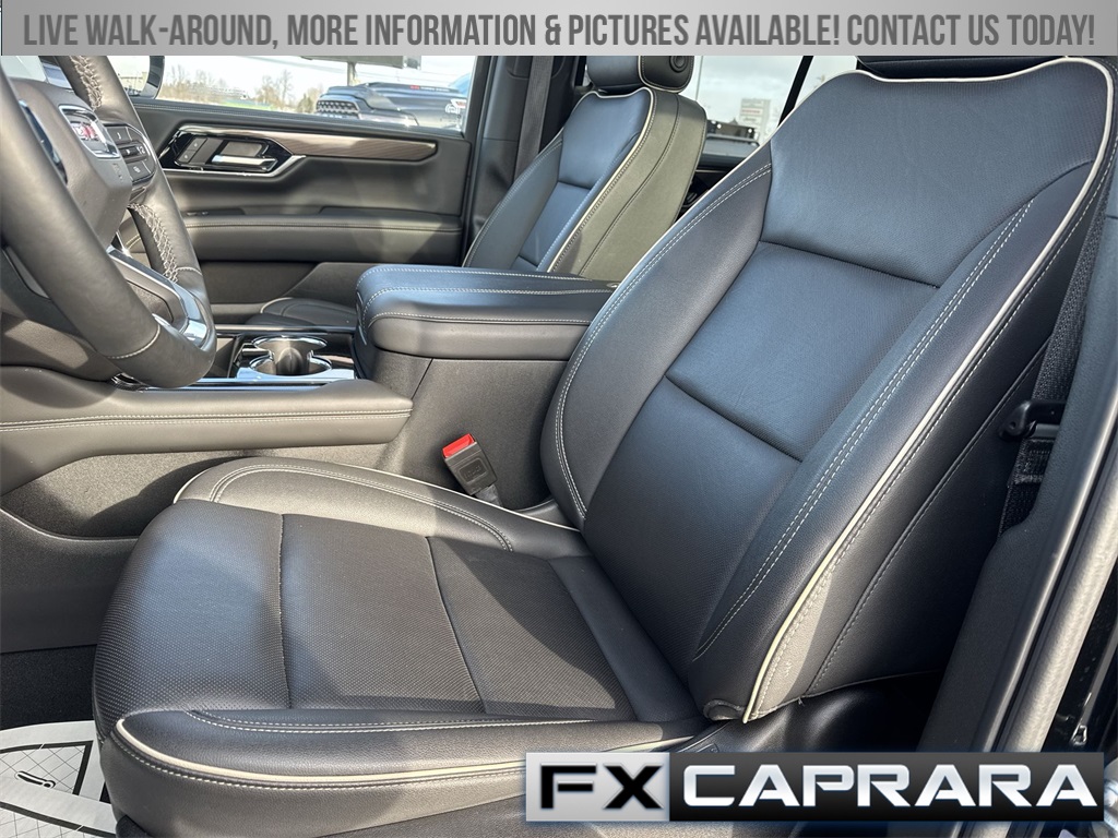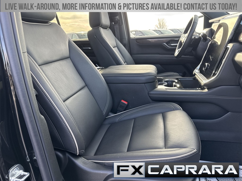 4WD, 10 Speakers, 3.23 Rear Axle Ratio, 3rd row seats: split-bench, 4-Wheel Disc Brakes, ABS brakes, Air Conditioning, Alloy wheels, AM/FM radio: SiriusXM with 360L, Apple CarPlay/Android Auto, Audio memory, Auto High-beam Headlights, Auto-dimming door mirrors, Auto-dimming Rear-View mirror, Automatic temperature control, Bodyside moldings, Bose 10-Speaker Surround with CenterPoint, Brake assist, Bumpers: body-color, Compass, CoreTech/Perforated Leather-Appointed Seating, Delay-off headlights, Driver door bin, Driver vanity mirror, Dual front impact airbags, Dual front side impact airbags, Electronic Stability Control, Emergency communication system: OnStar and GMC connected services capable, Exterior Parking Camera Rear, Four wheel independent suspension, Front anti-roll bar, Front Bucket Seats, Front Center Armrest, Front dual zone A/C, Front fog lights, Front reading lights, Fully automatic headlights, Garage door transmitter, Heated door mirrors, Heated Driver and Front Passenger Seats, Heated front seats, Heated rear seats, Heated steering wheel, Illuminated entry, Low tire pressure warning, Memory seat, Navigation system: GMC Connected Navigation, Occupant sensing airbag, Outside temperature display, Overhead airbag, Overhead console, Panic alarm, Passenger door bin, Passenger vanity mirror, Power door mirrors, Power driver seat, Power Liftgate, Power passenger seat, Power steering, Power windows, Premium Smooth Ride Suspension, Radio: 16.8" Diagonal Premium GMC Infotainment System, Rain sensing wipers, Rear air conditioning, Rear anti-roll bar, Rear reading lights, Rear seat center armrest, Rear window defroster, Rear window wiper, Remote keyless entry, Security system, SiriusXM with 360L, Speed control, Speed-sensing steering, Split folding rear seat, Spoiler, Steering wheel mounted audio controls, Tachometer, Telescoping steering wheel, Tilt steering wheel, Traction control, Trip computer, Turn signal indicator mirrors, Variably intermittent wipers, Voltmeter, Wheels: 20" x 9" Machined and Painted, 4WD.