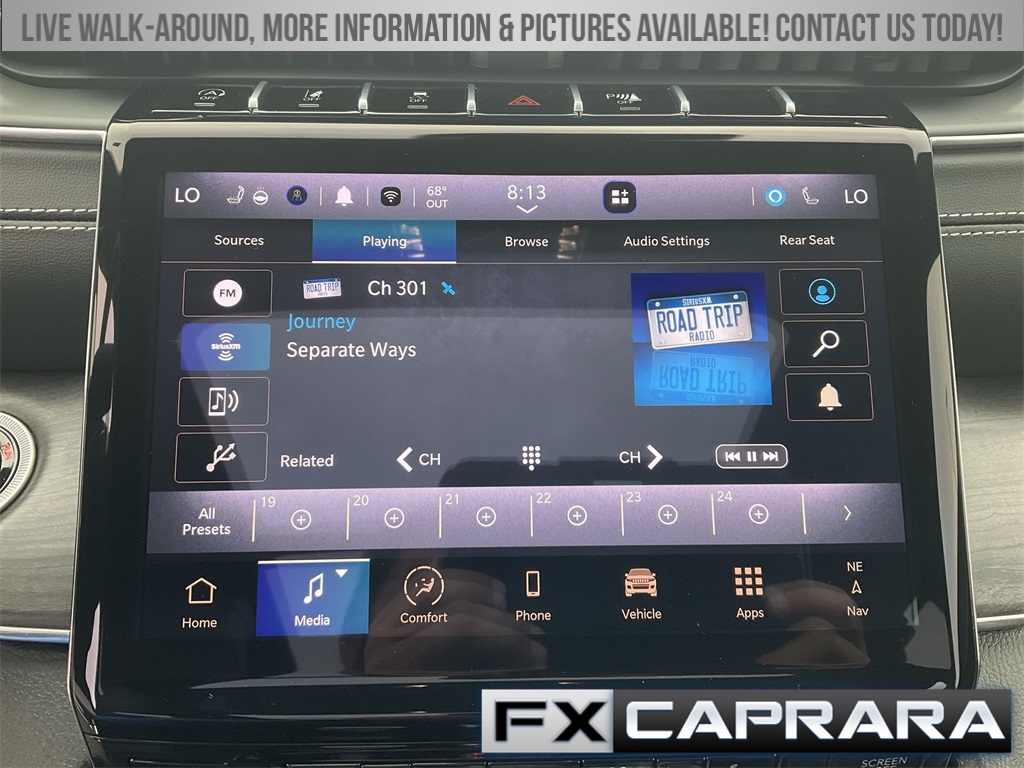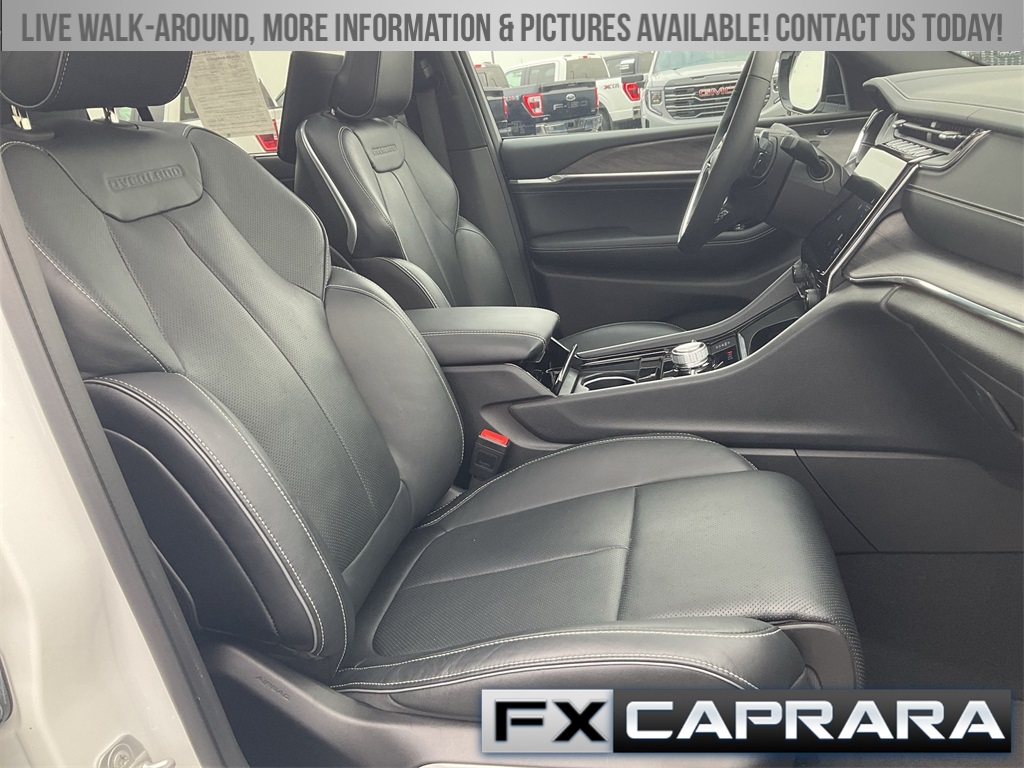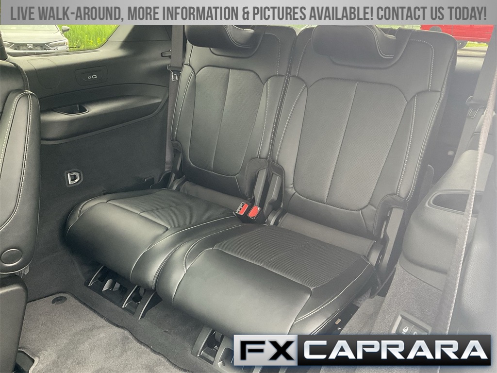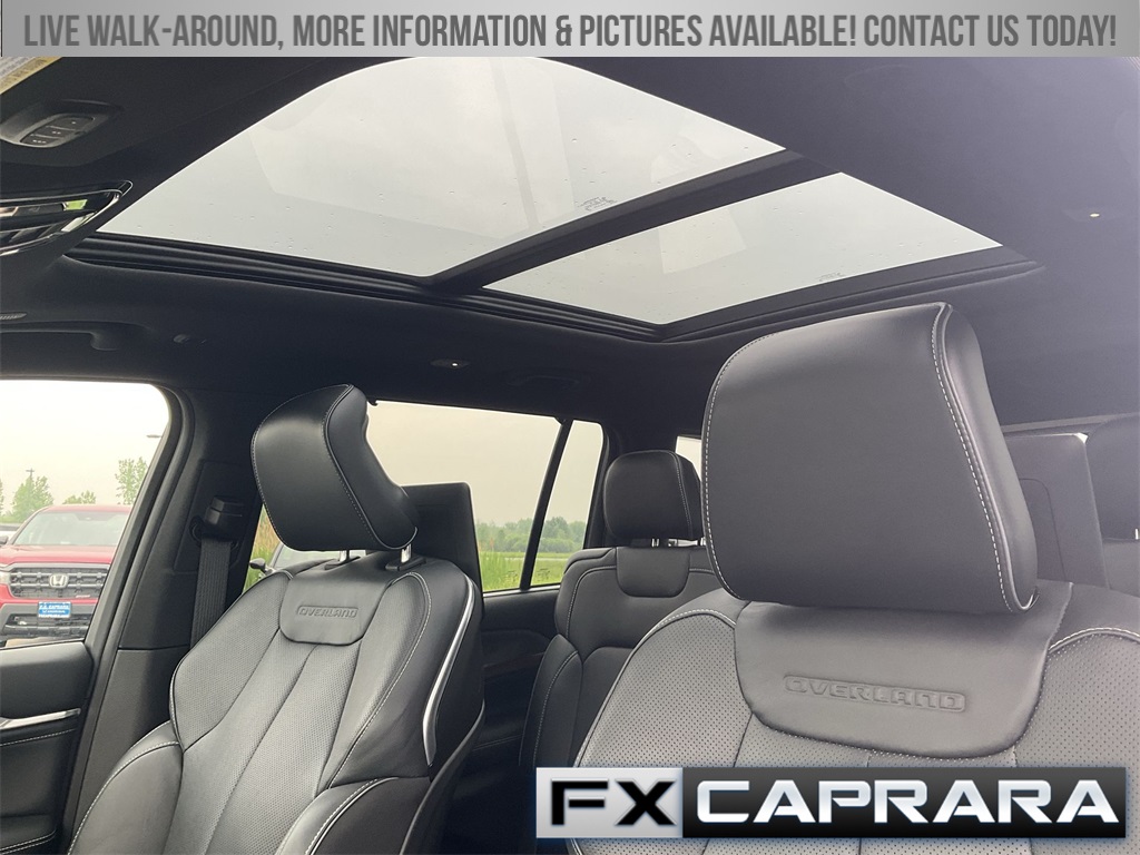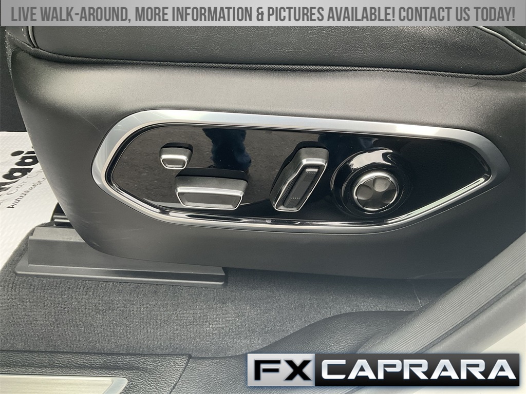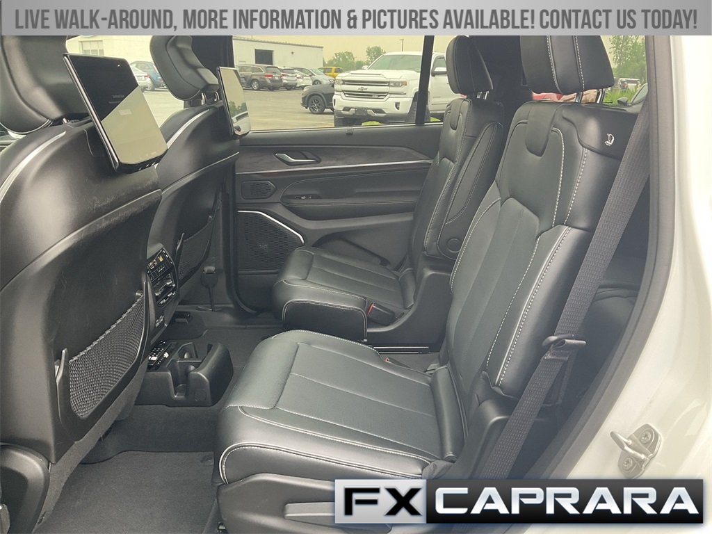 10 Speakers, 2nd Row Manual Window Shades, 3.45 Rear Axle Ratio, 3rd row seats: split-bench, 4-Wheel Disc Brakes, ABS brakes, Adaptive suspension, Air Conditioning, Alloy wheels, AM/FM radio: SiriusXM with 360L, Amazon Fire TV Built-in, Anti-whiplash front head restraints, Audio memory, Auto High-beam Headlights, Auto-dimming door mirrors, Auto-dimming Rear-View mirror, Auto-leveling suspension, Automatic temperature control, Brake assist, Bumpers: body-color, Compass, Delay-off headlights, Driver door bin, Driver Power Seat Back Massage, Driver vanity mirror, Dual front impact airbags, Dual front side impact airbags, Electronic Stability Control, Emergency communication system, Four wheel independent suspension, Front anti-roll bar, Front Bucket Seats, Front Center Armrest w/Storage, Front dual zone A/C, Front fog lights, Front License Plate Bracket, Front Passenger Power Seat Back Massage, Front reading lights, Fully automatic headlights, Garage door transmitter, Heated door mirrors, Heated front seats, Heated rear seats, Heated steering wheel, Illuminated entry, Knee airbag, Low tire pressure warning, Luxury Tech Group IV, Memory seat, Model Year Tracking, Nappa Leather Seats, Navigation System, Normal Duty Suspension, Occupant sensing airbag, Outside temperature display, Overhead airbag, Overhead console, Panic alarm, Passenger door bin, Passenger Seat Memory, Passenger vanity mirror, Power Adjust 12-Way Driver Seat, Power Adjust 12-Way Front Passenger Seat, Power door mirrors, Power driver seat, Power Fold Seatbacks, Power Liftgate, Power moonroof, Power passenger seat, Power steering, Power windows, Quick Order Package 23N, Radio data system, Radio: Uconnect 5 Nav with 10.1" Display, Rain sensing wipers, Rear air conditioning, Rear anti-roll bar, Rear reading lights, Rear Seat Video Group I, Rear window defroster, Rear window wiper, Rearview Autodim Digital Display Mirror, Reclining 3rd row seat, Remote keyless entry, Seatback Video Screens, Security system, Speed control, Speed-Sensitive Wipers, Split folding rear seat, Spoiler, Steering wheel memory, Steering wheel mounted audio controls, Tachometer, Telescoping steering wheel, Tilt steering wheel, Traction control, Trip computer, Turn signal indicator mirrors, Variably intermittent wipers, Ventilated front seats, Video USB Port, Voltmeter, Wheels: 20" x 8.5" Machined Face Aluminum, Wireless Charging Pad.
