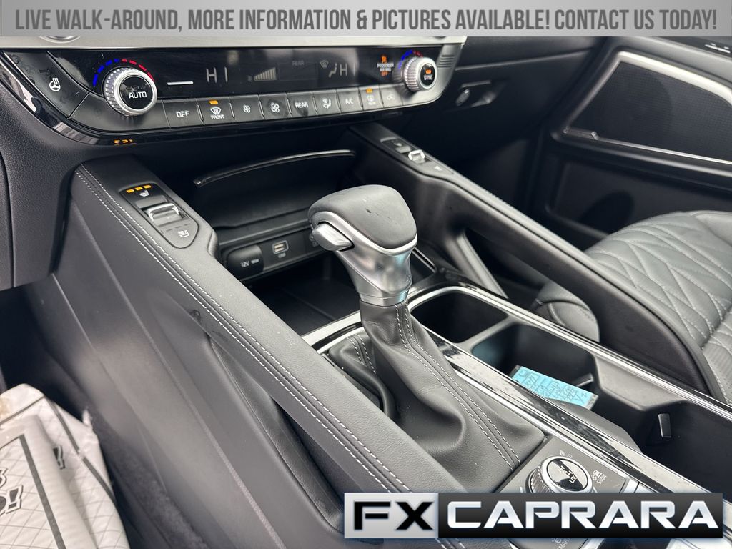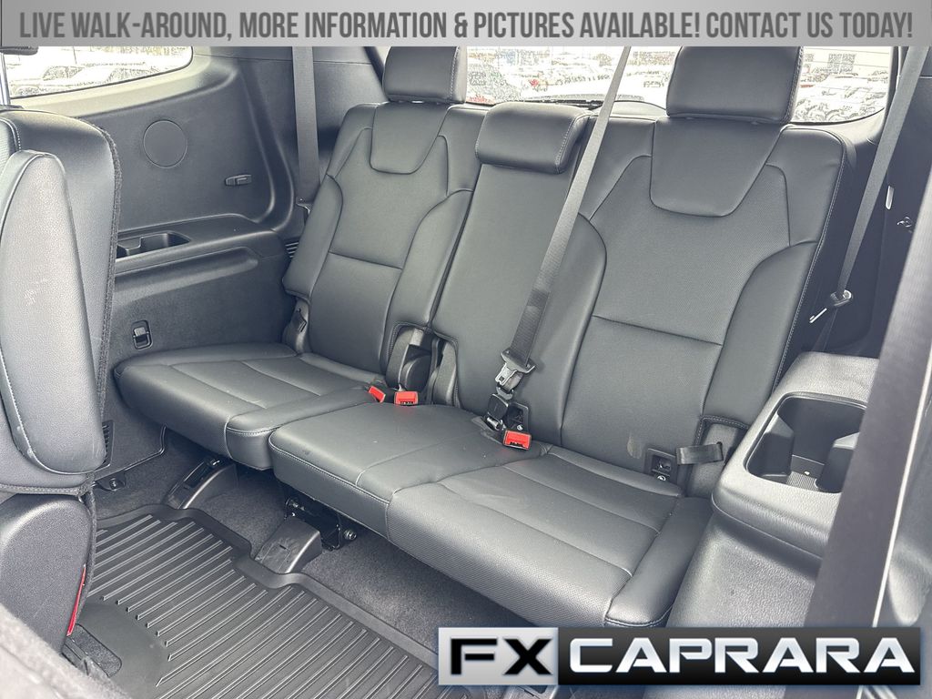 3rd row seats: split-bench, 4-Wheel Disc Brakes, 6 Speakers, ABS brakes, Air Conditioning, All Weather Floor Mats, Alloy wheels, AM/FM radio: SiriusXM, Apple CarPlay & Android Auto, Auto High-beam Headlights, Auto-dimming Rear-View mirror, Automatic temperature control, Brake assist, Bumpers: body-color, Compass, Delay-off headlights, Driver door bin, Driver vanity mirror, Dual front impact airbags, Dual front side impact airbags, Electronic Stability Control, Emergency communication system: 911 Connect, Exterior Parking Camera Rear, Four wheel independent suspension, Front anti-roll bar, Front Bucket Seats, Front Center Armrest, Front dual zone A/C, Front reading lights, Fully automatic headlights, Heated & Ventilated Front Bucket Seats, Heated door mirrors, Heated front seats, Illuminated entry, Knee airbag, Leather Seat Trim, Leather Shift Knob, Leather steering wheel, Low tire pressure warning, Navigation System, Occupant sensing airbag, Outside temperature display, Overhead airbag, Overhead console, Panic alarm, Passenger door bin, Passenger vanity mirror, Power door mirrors, Power driver seat, Power Liftgate, Power moonroof, Power passenger seat, Power steering, Power windows, Radio data system, Radio: AM/FM Display Audio System, Rear air conditioning, Rear anti-roll bar, Rear audio controls, Rear reading lights, Rear side impact airbag, Rear window defroster, Rear window wiper, Reclining 3rd row seat, Remote keyless entry, Security system, Speed control, Speed-sensing steering, Split folding rear seat, Spoiler, Steering wheel mounted audio controls, Tachometer, Telescoping steering wheel, Tilt steering wheel, Traction control, Trip computer, Turn signal indicator mirrors, Variably intermittent wipers, Ventilated front seats.