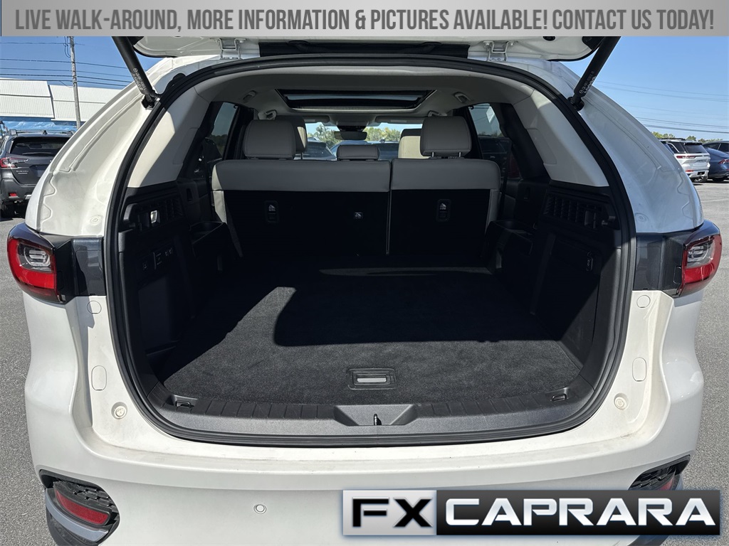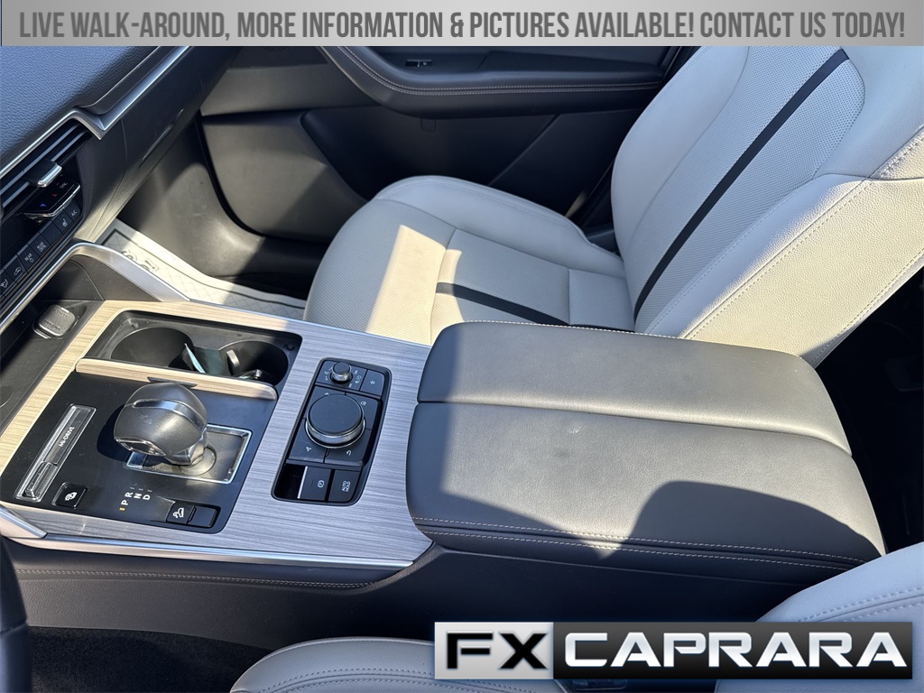 12 Speakers, 4-Wheel Disc Brakes, ABS brakes, Air Conditioning, Alloy wheels, AM/FM radio: SiriusXM, Auto High-beam Headlights, Auto-dimming Rear-View mirror, Automatic temperature control, Brake assist, Bumpers: body-color, Cargo Blocks, Compass, Delay-off headlights, Driver door bin, Driver vanity mirror, Dual front impact airbags, Dual front side impact airbags, E911 Automatic Emergency Notification, Electronic Stability Control, Emergency communication system: MAZDA CONNECT, Essential Tow (Trailer Hitch and Harness), Exterior Parking Camera Rear, Four wheel independent suspension, Front anti-roll bar, Front Bucket Seats, Front Center Armrest w/Storage, Front dual zone A/C, Front reading lights, Fully automatic headlights, Garage door transmitter: HomeLink, Heads-Up Display, Heated door mirrors, Heated Front Bucket Seats, Heated front seats, Illuminated entry, Infotainment System Voice Command, Knee airbag, Leather Seat Trim, Leather Shift Knob, Leather steering wheel, Low tire pressure warning, Mazda Connected Services, Mazda Online Navigation, Memory seat, Navigation system: MAZDA CONNECT, Occupant sensing airbag, Outside temperature display, Overhead airbag, Overhead console, Pandora Internet Radio Integration, Panic alarm, Passenger door bin, Passenger vanity mirror, Power door mirrors, Power driver seat, Power Liftgate, Power moonroof, Power passenger seat, Power steering, Power windows, Radio Broadcast Data System Program Information, Radio data system, Radio: AM/FM w/Bose Premium Audio Sound System, Rain sensing wipers, Rear air conditioning, Rear anti-roll bar, Rear reading lights, Rear seat center armrest, Rear window defroster, Rear window wiper, Remote keyless entry, Rhodium White Premium Paint Charge, SMS Text Msg Audio Delivery & Reply, Speed control, Speed-sensing steering, Split folding rear seat, Spoiler, Steering wheel mounted audio controls, Tachometer, Telescoping steering wheel, Tilt steering wheel, Traction control, Trip computer, Turn signal indicator mirrors, Variably intermittent wipers, Wheels: 21" x 9.5J Aluminum Alloy.