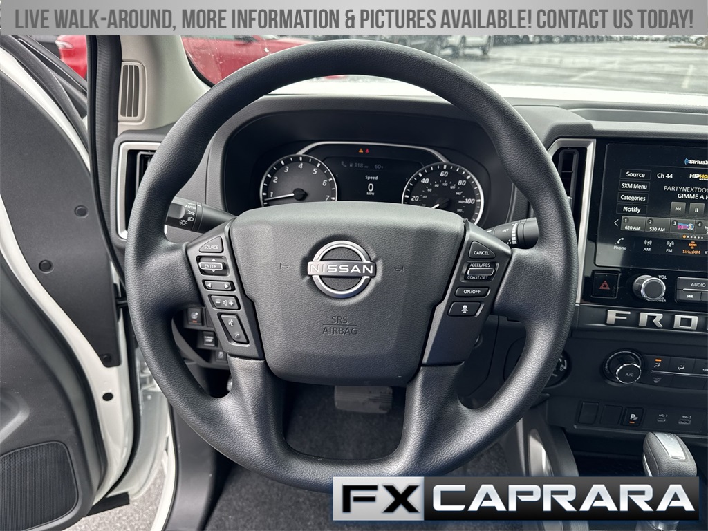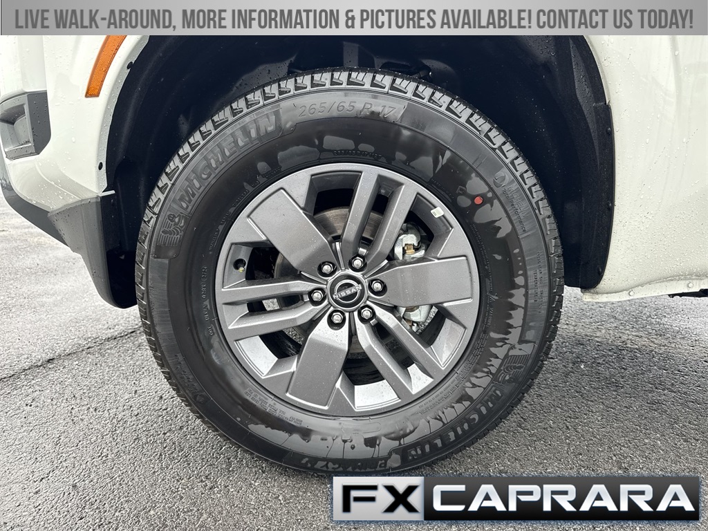 4WD, 17" Alloy Wheels, 3.692 Axle Ratio, 4-Wheel Disc Brakes, 6 Speakers, ABS brakes, Air Conditioning, Alloy wheels, AM/FM radio: SiriusXM, Anti-whiplash front head restraints, Auto High-beam Headlights, Blind Spot Warning, Brake assist, Bumpers: body-color, Delay-off headlights, Driver door bin, Driver vanity mirror, Dual front impact airbags, Dual front side impact airbags, Electronic Stability Control, Emergency communication system, Front anti-roll bar, Front Bucket Seats, Front Center Armrest, Front reading lights, Front wheel independent suspension, Fully automatic headlights, Illuminated entry, Knee airbag, Low tire pressure warning, NissanConnect Services & Wi-Fi Hotspot Delete, Occupant sensing airbag, Overhead airbag, Overhead console, Panic alarm, Passenger door bin, Passenger vanity mirror, Power door mirrors, Power driver seat, Power steering, Power windows, Premium Cloth Seat Trim, Radio data system, Radio: SXM/AM/FM/AUX/USB Audio System, Rear side impact airbag, Rear step bumper, Remote keyless entry, Security system, Sliding Window Delete, Speed control, Speed-sensing steering, Split folding rear seat, Steering wheel mounted audio controls, Tachometer, Telematics Delete Package (H03), Telescoping steering wheel, Tilt steering wheel, Traction control, Trip computer, Variably intermittent wipers, Voltmeter, Wireless Apple CarPlay/Wireless Android Auto, 4WD.