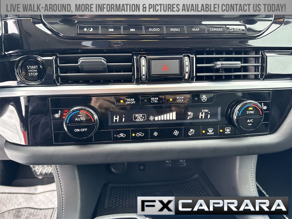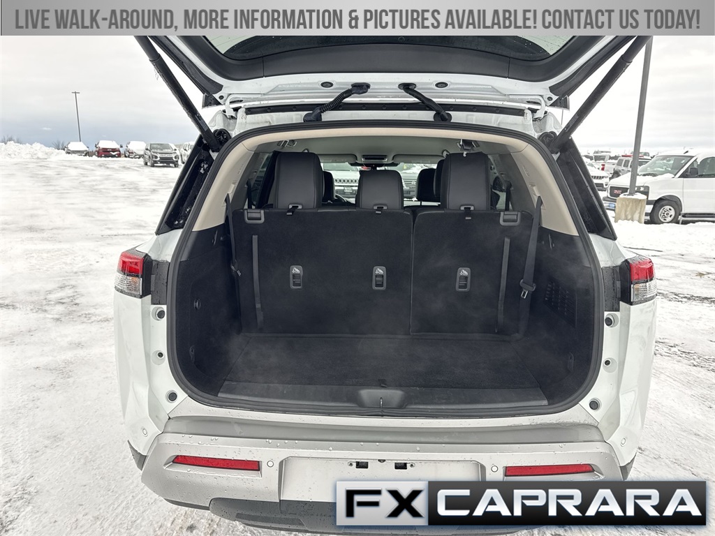 4WD, 3rd row seats: bench, 4-Wheel Disc Brakes, 6 Speakers, ABS brakes, Air Conditioning, Alloy wheels, AM/FM radio: SiriusXM, Auto High-beam Headlights, Auto-dimming Rear-View mirror, Automatic temperature control, Bench Seat Carpeted Floor Mats (set of 4), Black Splash Guards (set of 4), Brake assist, Bumpers: body-color, Cross Bars, Delay-off headlights, Driver door bin, Driver vanity mirror, Dual front impact airbags, Dual front side impact airbags, Electronic Stability Control, Emergency communication system, Exterior Parking Camera Rear, Four wheel independent suspension, Front anti-roll bar, Front Bucket Seats, Front Center Armrest, Front dual zone A/C, Front reading lights, Fully automatic headlights, Garage door transmitter: HomeLink, Heated door mirrors, Heated Front Bucket Seats, Heated front seats, Heated steering wheel, Illuminated entry, Knee airbag, Leather steering wheel, Leather-Appointed Seating Surfaces, Low tire pressure warning, Navigation system: NissanConnect with Navigation and Services, Nissan USB Charging Cable Set, NissanConnect featuring Apple CarPlay and Android Auto, NissanConnect with Navigation and Services, Occupant sensing airbag, Outside temperature display, Overhead airbag, Overhead console, Panic alarm, Passenger door bin, Passenger vanity mirror, Power door mirrors, Power driver seat, Power Liftgate, Power passenger seat, Power steering, Power windows, Premium Paint, Radio data system, Radio: AM/FM Audio System, Rear air conditioning, Rear anti-roll bar, Rear reading lights, Rear seat center armrest, Rear side impact airbag, Rear window defroster, Rear window wiper, Reclining 3rd row seat, Remote keyless entry, Security system, Speed control, Speed-sensing steering, Split folding rear seat, Spoiler, Steering wheel mounted audio controls, Tachometer, Telescoping steering wheel, Tilt steering wheel, Traction control, Trip computer, Turn signal indicator mirrors, Variably intermittent wipers, Wheels: 18" x 8J Machined Alloy, 4WD.