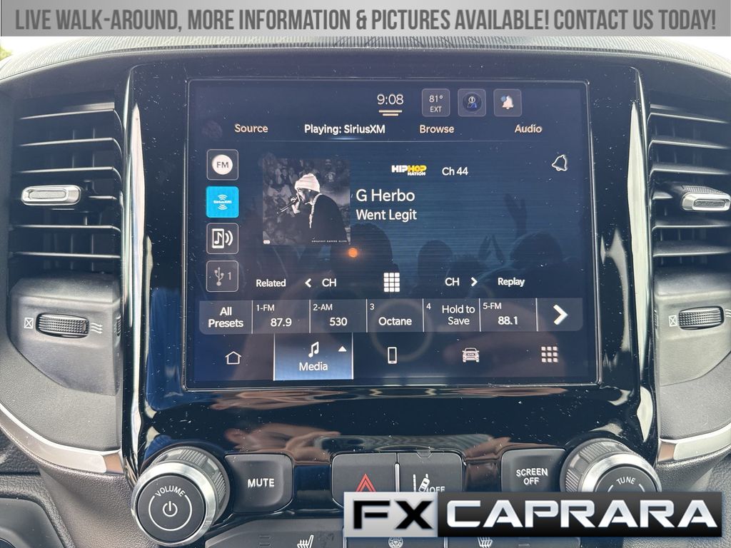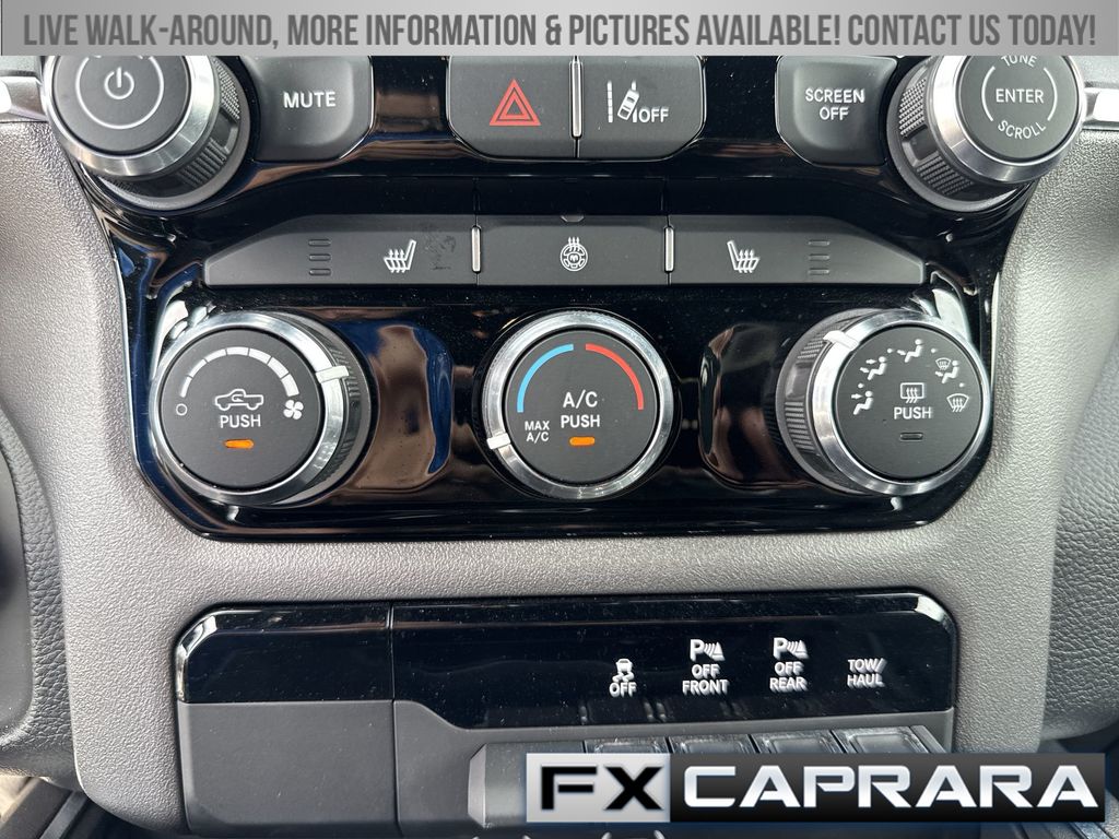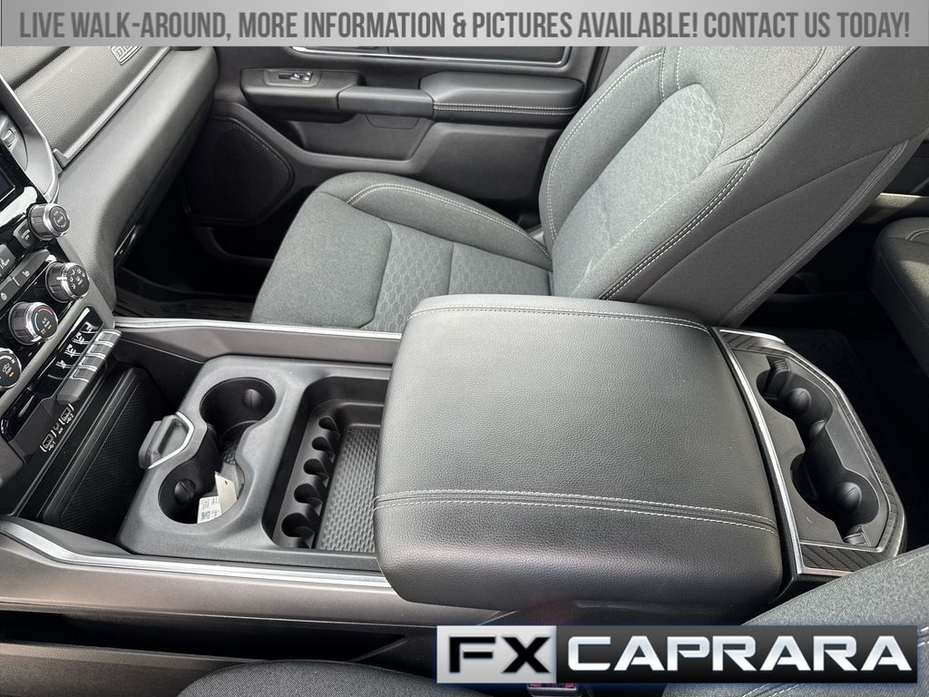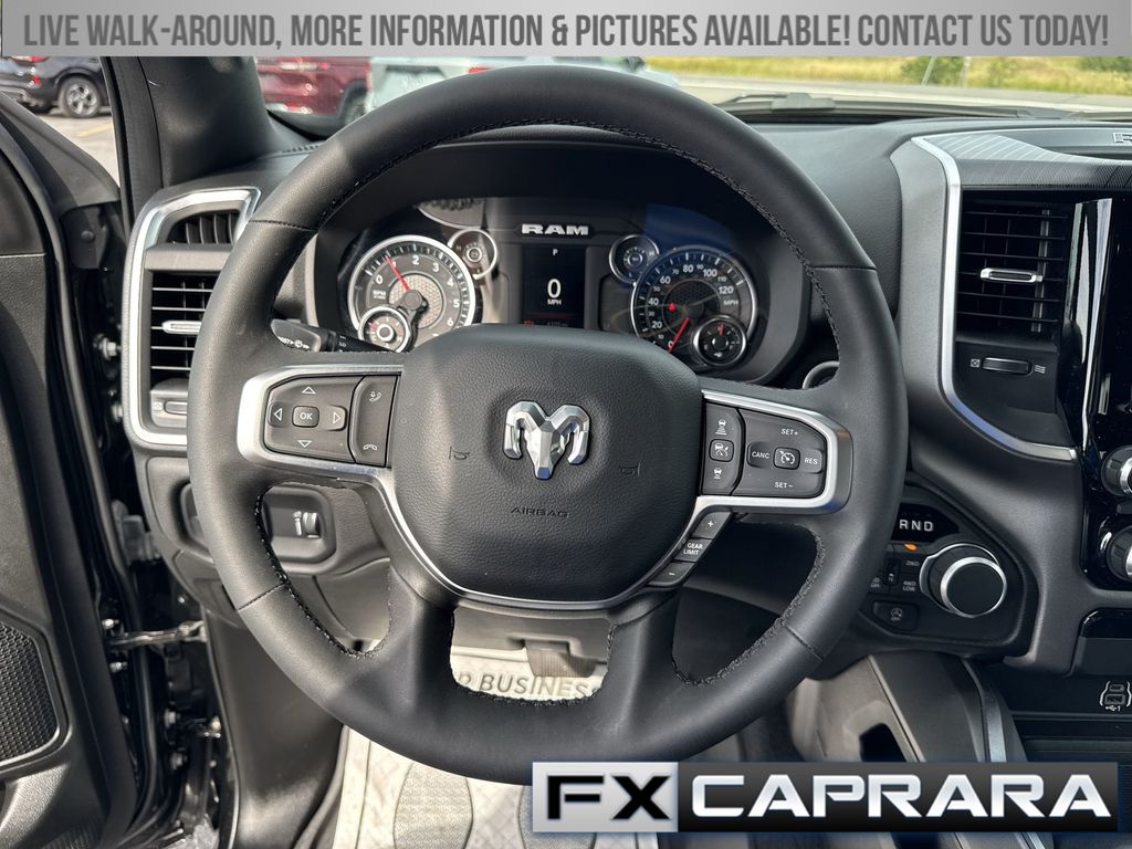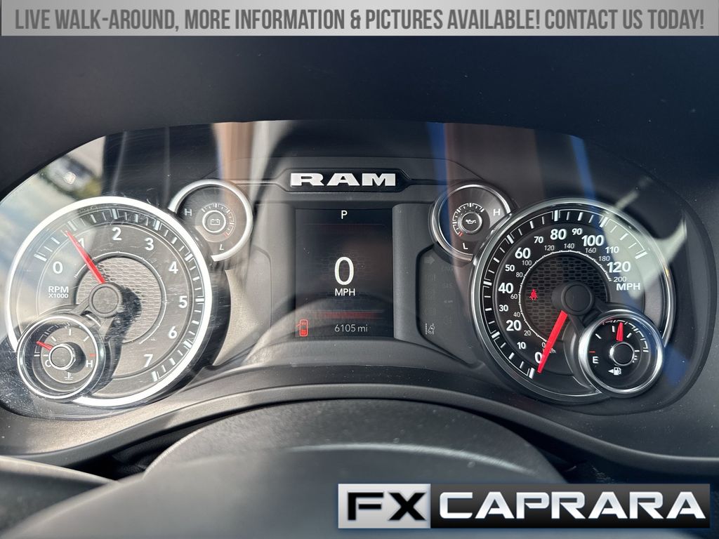 115V Auxiliary Power Outlet, 2nd Row In Floor Storage Bins, 3 Rear Seat Head Restraints, 3.21 Rear Axle Ratio, 4 Way Front Headrests, 4-Wheel Disc Brakes, 400W Inverter, 4G LTE Wi-Fi Hot Spot, 6 Speakers, ABS brakes, Air Conditioning, Alloy wheels, AM/FM radio, Apple CarPlay/Android Auto, Auto High-beam Headlights, Auto Power-Folding Mirrors, Auto-Dimming Exterior Driver Mirror, Auto-Dimming Rear-View Mirror, Big Horn Badge, Big Horn Level 1 Equipment Group, Black Exterior Mirrors, Black Premium Power Mirrors, Brake assist, Bumpers: chrome, Cloth Bench Seat, Compass, Connectivity - US/Canada, Convex Wide-Angle Exterior Mirror Insert, Delay-off headlights, Driver door bin, Dual front impact airbags, Dual front side impact airbags, Electronic Stability Control, Exterior Mirrors Courtesy Lamps, Exterior Mirrors w/Heating Element, Exterior Mirrors w/Supplemental Signals, Front anti-roll bar, Front Center Armrest w/Storage, Front fog lights, Front reading lights, Front Seat Back Map Pockets, Front wheel independent suspension, Fully automatic headlights, Glove Box Lamp, GPS Antenna Input, Heated door mirrors, Heated Front Seats, Heated Steering Wheel, Illuminated entry, Integrated Voice Command w/Bluetooth, Leather Wrapped Steering Wheel, Low tire pressure warning, Manual Adjust 4-Way Front Passenger Seat, Manual Folding Exterior Mirrors, Manufacturer's Statement of Origin, MOPAR Front & Rear Rubber Floor Mats, Occupant sensing airbag, Outside temperature display, Overhead airbag, Overhead console, Panic alarm, ParkView Rear Back-Up Camera, Passenger door bin, Passenger vanity mirror, Power 2-Way Driver Lumbar Adjust, Power Adjust 8-Way Driver Seat, Power Adjustable Pedals, Power door mirrors, Power steering, Power windows, Quick Order Package 23Z Big Horn, Radio data system, Radio: Uconnect 5 W w/8.4" Display, RAM Grille Badge - Chrome, Rear 60/40 Folding Seat, Rear anti-roll bar, Rear Power Sliding Window, Rear seat center armrest, Rear step bumper, Rear Window Defroster, Remote keyless entry, Speed control, Split folding rear seat, Steering Wheel Mounted Audio Controls, Sun Visors w/Illuminated Vanity Mirrors, Supplier Part Tracking (J-1), Tachometer, Telescoping steering wheel, Tilt steering wheel, Traction control, Trip computer, Universal Garage Door Opener, USB Host Flip, Variably intermittent wipers, Voltmeter, Wheels: 18" x 8" Cast-Aluminum Painted, Wheels: 20" x 9" Aluminum Chrome Clad (WRK).