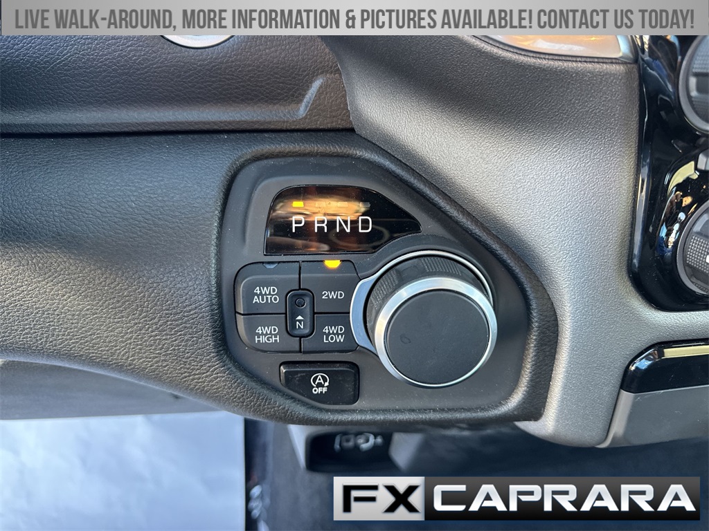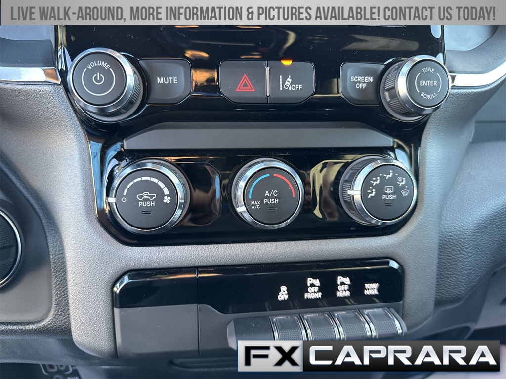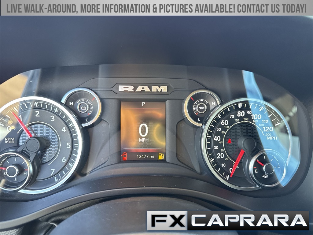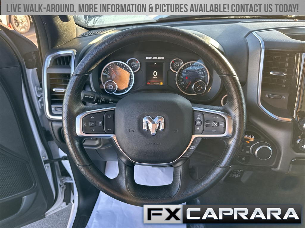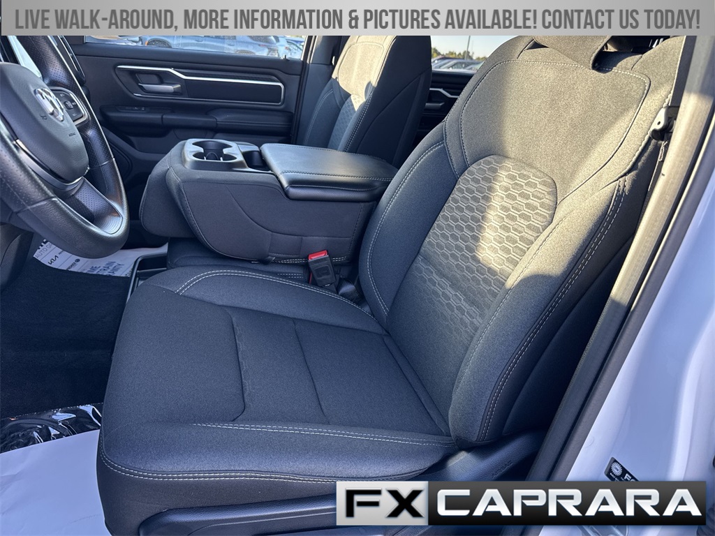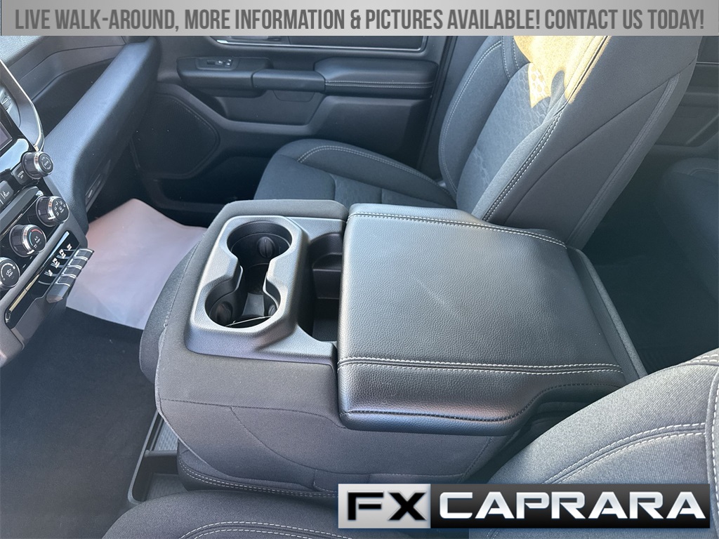 3 Rear Seat Head Restraints, 3.21 Rear Axle Ratio, 4 Way Front Headrests, 4-Wheel Disc Brakes, 4G LTE Wi-Fi Hot Spot, 6 Speakers, ABS brakes, Air Conditioning, Alloy wheels, AM/FM radio, Apple CarPlay/Android Auto, Auto High-beam Headlights, Big Horn Badge, Black Exterior Mirrors, Brake assist, Bumpers: chrome, Cloth Bench Seat, Compass, Connectivity - US/Canada, Convex Wide-Angle Exterior Mirror Insert, Delay-off headlights, Driver door bin, Dual front impact airbags, Dual front side impact airbags, Electronic Stability Control, Exterior Mirrors w/Heating Element, Front anti-roll bar, Front Center Armrest w/Storage, Front fog lights, Front License Plate Bracket, Front reading lights, Front Seat Back Map Pockets, Front wheel independent suspension, Fully automatic headlights, GPS Antenna Input, Heated door mirrors, Illuminated entry, Integrated Voice Command w/Bluetooth, Low tire pressure warning, Manual Adjust 4-Way Front Passenger Seat, Manual Folding Exterior Mirrors, Manufacturer's Statement of Origin, MOPAR Front & Rear Rubber Floor Mats, Occupant sensing airbag, Outside temperature display, Overhead airbag, Overhead console, Panic alarm, ParkView Rear Back-Up Camera, Passenger door bin, Passenger vanity mirror, Power door mirrors, Power steering, Power windows, Quick Order Package 23Z Big Horn, Radio data system, Radio: Uconnect 5 W w/8.4" Display, RAM Grille Badge - Chrome, Rear 60/40 Folding Seat, Rear anti-roll bar, Rear seat center armrest, Rear step bumper, Remote keyless entry, Speed control, Split folding rear seat, Supplier Part Tracking (J-1), Tachometer, Telescoping steering wheel, Tilt steering wheel, Traction control, Trip computer, USB Host Flip, Variably intermittent wipers, Voltmeter, Wheels: 18" x 8" Cast-Aluminum Painted.