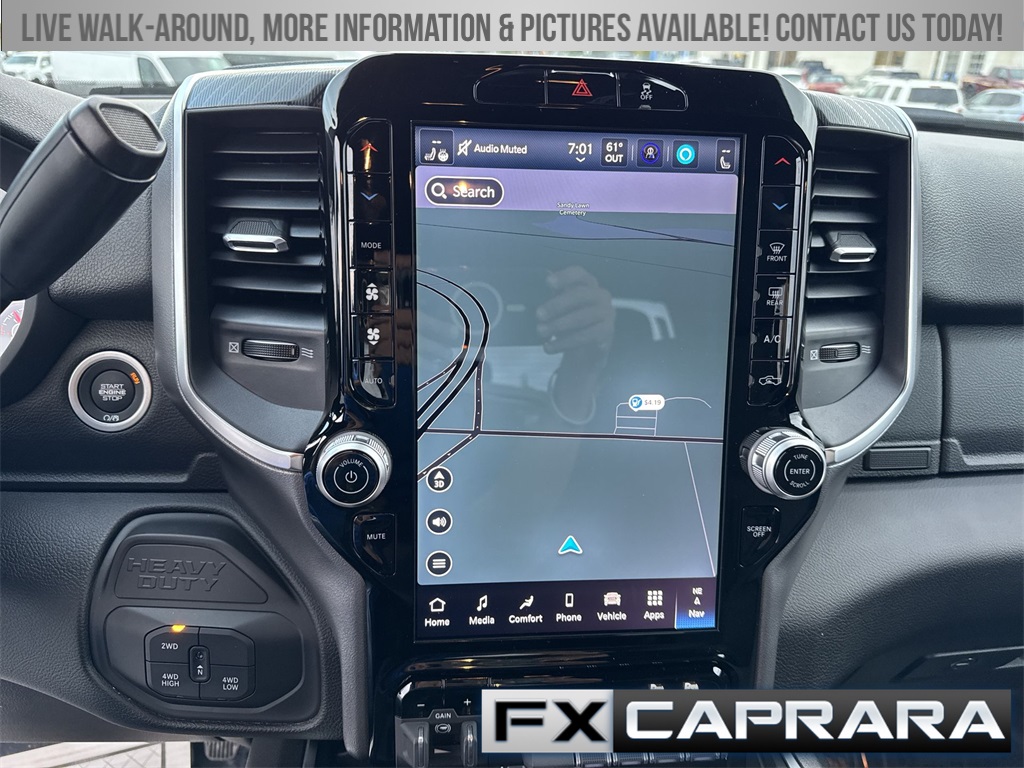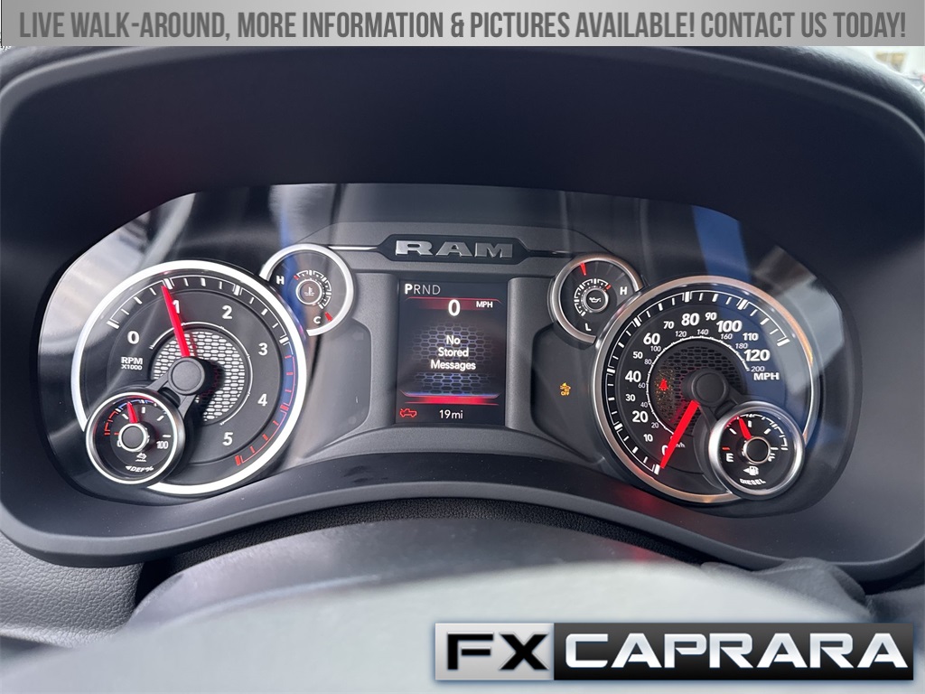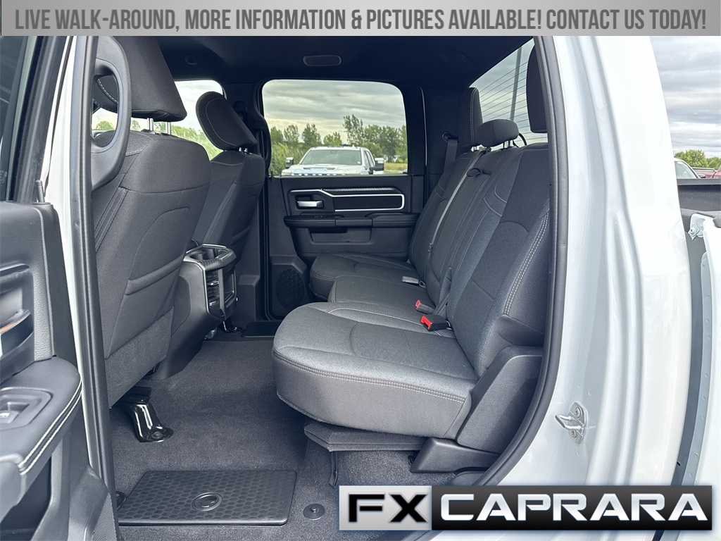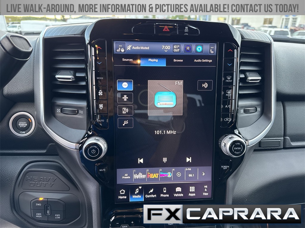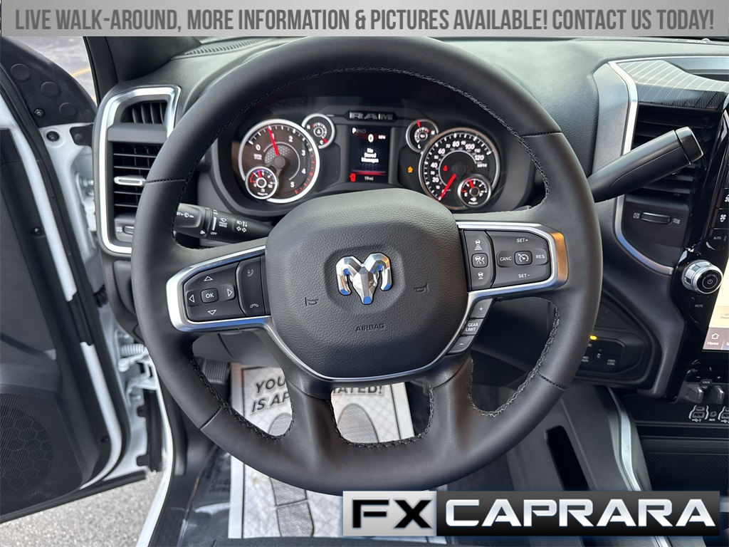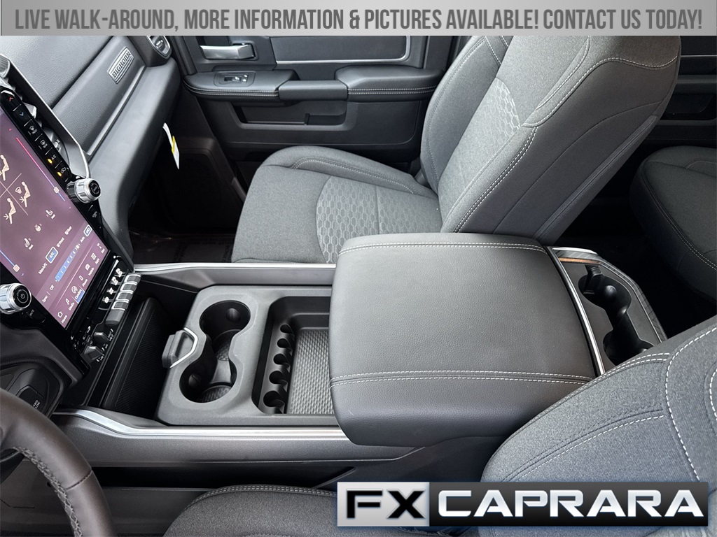 12" Touchscreen Display, 2 Way Rear Headrest Seat, 2nd Row In Floor Storage Bins, 4 Way Front Headrests, 4-Wheel Disc Brakes, 40/20/40 Split Bench Seat, 4G LTE Wi-Fi Hot Spot, 6 Speakers, 9 Alpine Speakers w/Subwoofer, ABS brakes, Air Conditioning, Air Conditioning ATC w/Dual Zone Control, Alexa Built-In, Alloy wheels, AM/FM radio: SiriusXM, Apple CarPlay, Apple CarPlay/Android Auto, Auto Power-Folding Mirrors, Auto-Dimming Rear-View Mirror, Big Horn Level 1 Plus Equipment Group, Black Exterior Mirrors, Brake assist, Bumpers: chrome, Cloth 40/20/40 Bench Seat, Cloth 40/20/40 Premium Bench Seat, Cold Weather Group, Compass, Connected Travel & Traffic Services, Connectivity - US/Canada, Delay-off headlights, Driver door bin, Dual front impact airbags, Dual front side impact airbags, Dual Glove Boxes, Electronic Stability Control, Emergency Vehicle Alert System (EVAS), Engine Block Heater, Exterior Mirrors Courtesy Lamps, Exterior Mirrors w/Heating Element, Exterior Mirrors w/Supplemental Signals, Foam Bottle Insert (Door Trim Panel), Folding Flat Load Floor Storage, Footwell Courtesy Lamp, For Details Visit DriveUconnect.com, For More Info, Call 800-643-2112, Forward & Reverse Utility Lights, Front anti-roll bar, Front Armrest w/Cupholders, Front Center Armrest w/Storage, Front Center Seat Cushion Storage, Front fog lights, Front License Plate Bracket, Front reading lights, Front Seat Back Map Pockets, Fully automatic headlights, Global Telematics Box Module (TBM), Glove Box Lamp, Google Android Auto, GPS Antenna Input, GPS Navigation, HD Radio, Heated door mirrors, Heated Front Seats, Heated Seats & Wheel Group, Heated Steering Wheel, Illuminated entry, Integrated Voice Command w/Bluetooth, LED Bed Lighting, Locking Lower Glove Box, Low tire pressure warning, Luxury Steering Wheel, Manual Adjust 4-Way Driver Seat, Manual Adjust 4-Way Front Passenger Seat, Manufacturer's Statement of Origin, Mirror Running Lights, MOPAR Deployable Bed Step, MOPAR Front & Rear Rubber Floor Mats, MOPAR Spray In Bedliner, MOPAR Winter Front Grille Cover, Occupant sensing airbag, Off-Road Information Pages, Outside temperature display, Overhead airbag, Overhead console, Panic alarm, ParkView Rear Back-Up Camera, Passenger door bin, Passenger vanity mirror, Power 2-Way Driver Lumbar Adjust, Power Adjust 8-Way Driver Seat, Power Adjust Mirrors, Power door mirrors, Power Heated Fold Telescopic Mirrors, Power steering, Power Telescoping Mirrors, Power windows, Power-Adjustable Convex Aux Mirrors, Quick Order Package 24Z Big Horn, Radio data system, Radio: Uconnect 5 Nav w/12.0" Display, Radio: Uconnect 5 w/8.4" Display, Rear 60/40 Folding Seat, Rear Dome w/On/Off Switch Lamp, Rear Folding Seat, Rear seat center armrest, Rear step bumper, Rear window defroster, Remote keyless entry, Remote Start System, Remote USB Port - Charge Only, Selectable Tire Fill Alert, SiriusXM Radio Service, SiriusXM w/360L, Speed control, Steering Wheel Mounted Audio Controls, Storage Tray, Tachometer, Tilt steering wheel, Traction control, Trailer Tow Pages, Trip computer, Turn signal indicator mirrors, Variably intermittent wipers, Voltmeter, Wheels: 18" x 8.0" Polished Aluminum.