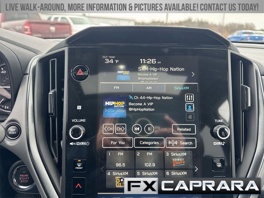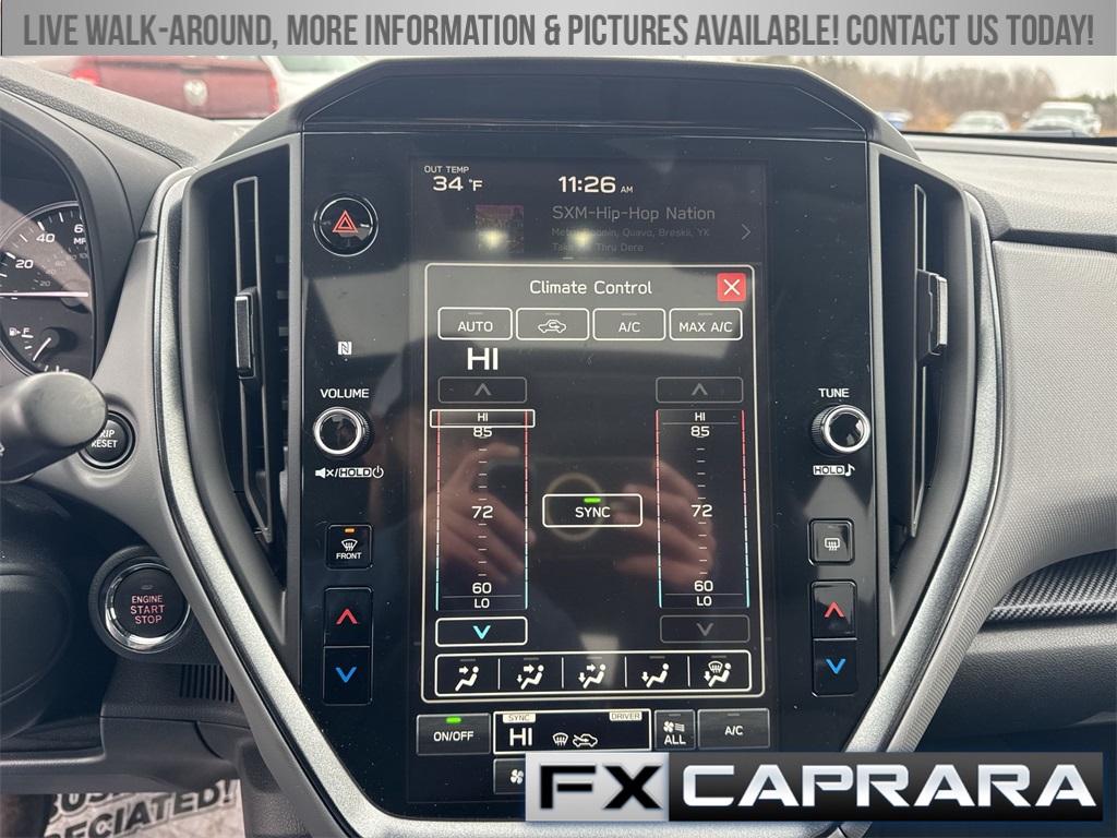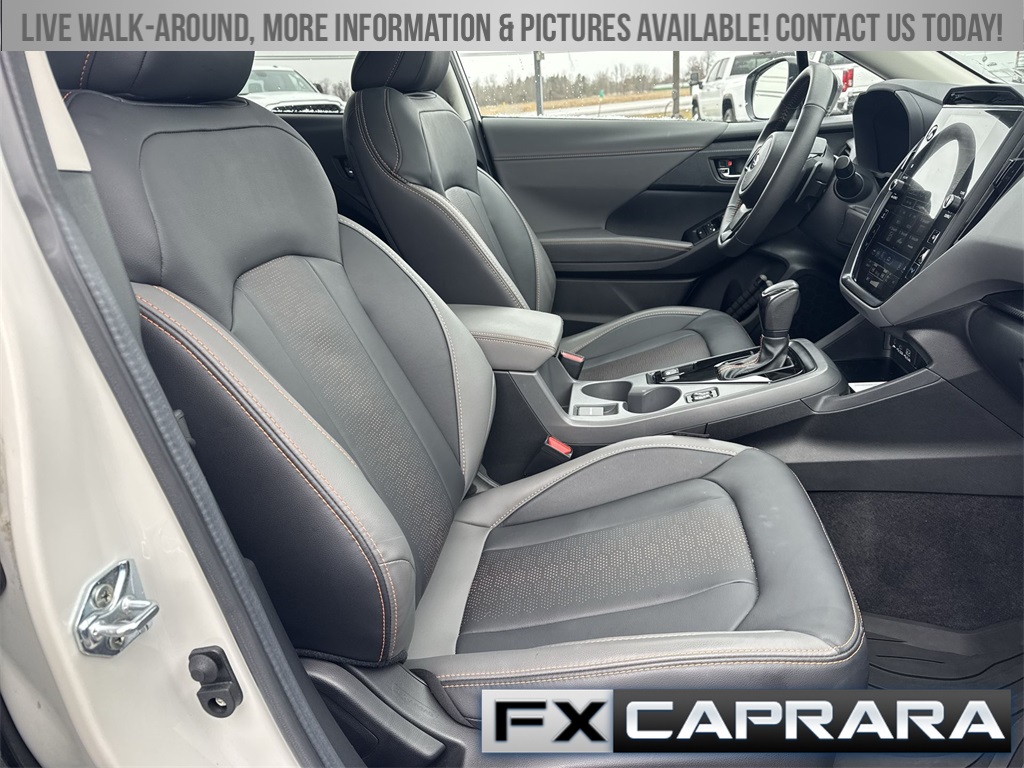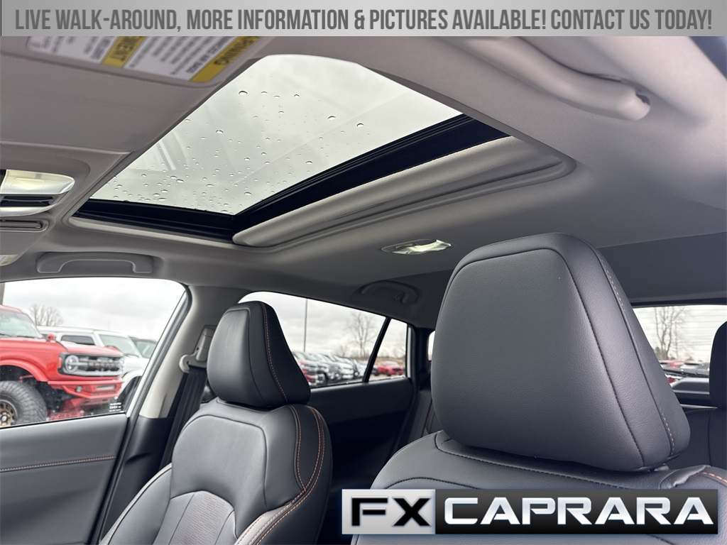 4-Wheel Disc Brakes, 6 Speakers, ABS brakes, Air Conditioning, All-Weather Floor Liners, Alloy wheels, AM/FM radio: SiriusXM, Anti-whiplash front head restraints, Auto High-beam Headlights, Auto-Dimming Exterior Mirror w/Approach Light, Auto-Dimming Mirror w/Compass & HomeLink, Automatic temperature control, Brake assist, Bumpers: body-color, Driver door bin, Driver vanity mirror, Dual front impact airbags, Dual front side impact airbags, Electronic Stability Control, Emergency communication system, Exterior Parking Camera Rear, Four wheel independent suspension, Front anti-roll bar, Front Bucket Seats, Front Center Armrest, Front dual zone A/C, Front fog lights, Front reading lights, Fully automatic headlights, harman/kardon Audio & Power Moonroof, harman/kardon Surround Sound Speaker System, Heated door mirrors, Heated Front Bucket Seats, Heated front seats, Illuminated entry, Knee airbag, Leather Shift Knob, Leather steering wheel, Leather-Trimmed Upholstery, LED Upgrade, Low tire pressure warning, Occupant sensing airbag, Outside temperature display, Overhead airbag, Overhead console, Panic alarm, Passenger door bin, Passenger vanity mirror, Popular Package #3A, Power door mirrors, Power driver seat, Power Moonroof, Power steering, Power windows, Radio data system, Radio: Subaru 11.6" Multimedia Plus System, Rear anti-roll bar, Rear Bumper Cover, Rear seat center armrest, Rear Seatback Protector, Rear window defroster, Rear window wiper, Remote keyless entry, Security system, Speed control, Speed-sensing steering, Split folding rear seat, Spoiler, Steering wheel mounted audio controls, Tachometer, Telescoping steering wheel, Tilt steering wheel, Traction control, Trip computer, Turn signal indicator mirrors, Variably intermittent wipers, Wheels: 18" x 7.0" J Machine Finish Aluminum-Alloy.