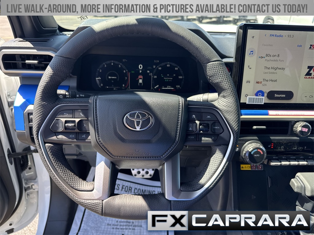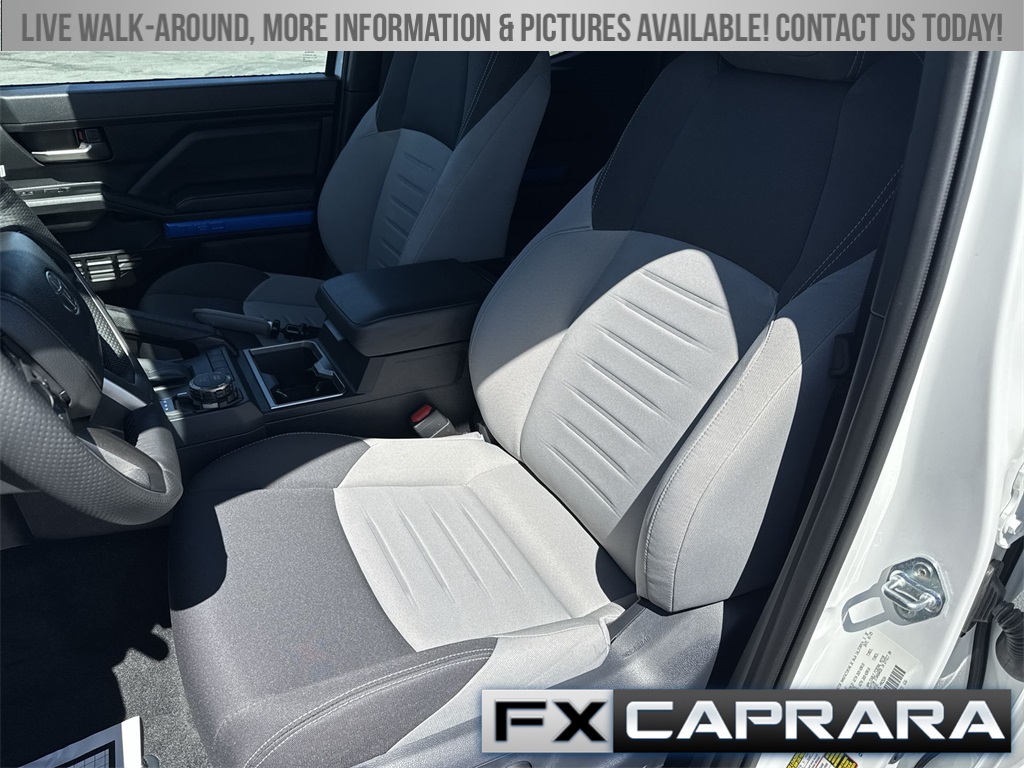 4WD, 3.583 Axle Ratio, 4-Wheel Disc Brakes, 6 Speakers, ABS brakes, Air Conditioning, Alloy wheels, AM/FM radio: SiriusXM, Anti-whiplash front head restraints, Apple CarPlay/Android Auto, Auto High-beam Headlights, Auto-dimming Rear-View mirror, Automatic temperature control, Brake assist, Bumpers: body-color, Driver door bin, Driver vanity mirror, Dual front impact airbags, Dual front side impact airbags, Electronic Stability Control, Emergency communication system: Safety Connect (1-year trial), Exterior Parking Camera Rear, Fabric Seat Trim, Four wheel independent suspension, Front anti-roll bar, Front Bucket Seats, Front Center Armrest, Front fog lights, Front reading lights, Fully automatic headlights, Heated door mirrors, Illuminated entry, JBL Premium Audio, Knee airbag, Leather Shift Knob, Leather steering wheel, Low tire pressure warning, Occupant sensing airbag, Outside temperature display, Overhead airbag, Overhead console, Panic alarm, Passenger door bin, Passenger vanity mirror, Power door mirrors, Power steering, Power windows, Radio: 8" Toyota Audio Multimedia, Rear step bumper, Rear window defroster, Remote keyless entry, Security system, SofTex Seat Trim, Speed control, Speed-sensing steering, Split folding rear seat, Steering wheel mounted audio controls, Tachometer, Telescoping steering wheel, Tilt steering wheel, Traction control, Trip computer, Turn signal indicator mirrors, Variably intermittent wipers, Wheels: 18" TRD Sport Alloy, 4WD.