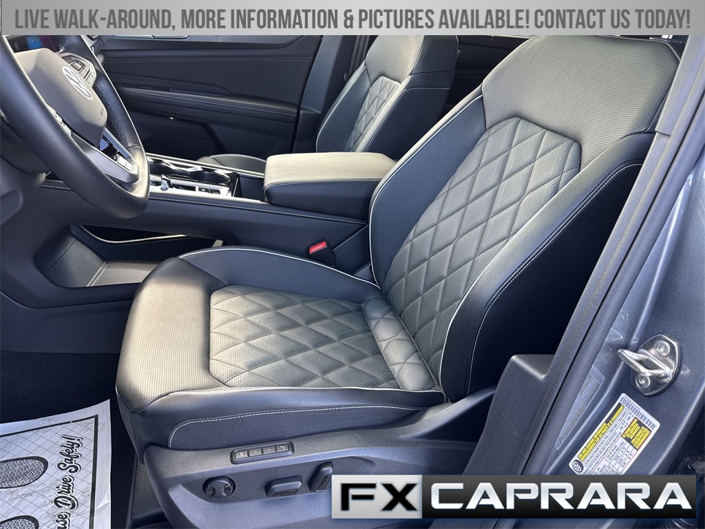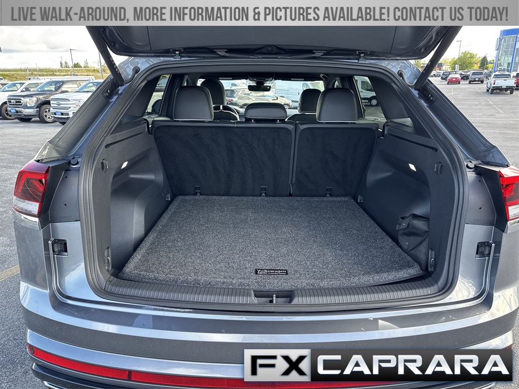 4-Wheel Disc Brakes, 4-Wheel Independent Suspension, 6 Speakers, ABS brakes, Air Conditioning, Alloy wheels, AM/FM radio: SiriusXM with 360L, Auto High-beam Headlights, Auto-dimming Rear-View mirror, Automatic temperature control, Brake assist, Bumpers: body-color, Compass, Delay-off headlights, Driver door bin, Driver vanity mirror, Dual front impact airbags, Dual front side impact airbags, Electronic Stability Control, Emergency communication system: VW Car-Net Safe & Secure 5-year, Exterior Parking Camera Rear, Four wheel independent suspension, Front anti-roll bar, Front Bucket Seats, Front Center Armrest, Front dual zone A/C, Front fog lights, Front reading lights, Fully automatic headlights, harman/kardon® Speakers, Heads-Up Display, Heated & Actively Ventilated Front Seats, Heated door mirrors, Heated front seats, Heated rear seats, Heated steering wheel, Illuminated entry, Leather steering wheel, Low tire pressure warning, Memory seat, Navigation System, Occupant sensing airbag, Outside temperature display, Overhead airbag, Overhead console, Panic alarm, Passenger door bin, Passenger vanity mirror, Perforated Vienna Leather Seating Surfaces, Power door mirrors, Power driver seat, Power Liftgate, Power moonroof: Panoramic, Power passenger seat, Power steering, Power windows, Radio data system, Radio: MIB3 Discover Pro Navigation AM/FM/HD, Rain sensing wipers, Rear anti-roll bar, Rear audio controls, Rear reading lights, Rear seat center armrest, Rear window defroster, Rear window wiper, Remote keyless entry, Security system, Speed control, Speed-sensing steering, Split folding rear seat, Spoiler, Sport steering wheel, Steering wheel mounted audio controls, Tachometer, Telescoping steering wheel, Tilt steering wheel, Traction control, Trip computer, Turn signal indicator mirrors, Variably intermittent wipers, Ventilated front seats, Wheels: 21" 2-Tone Machined Alloy.