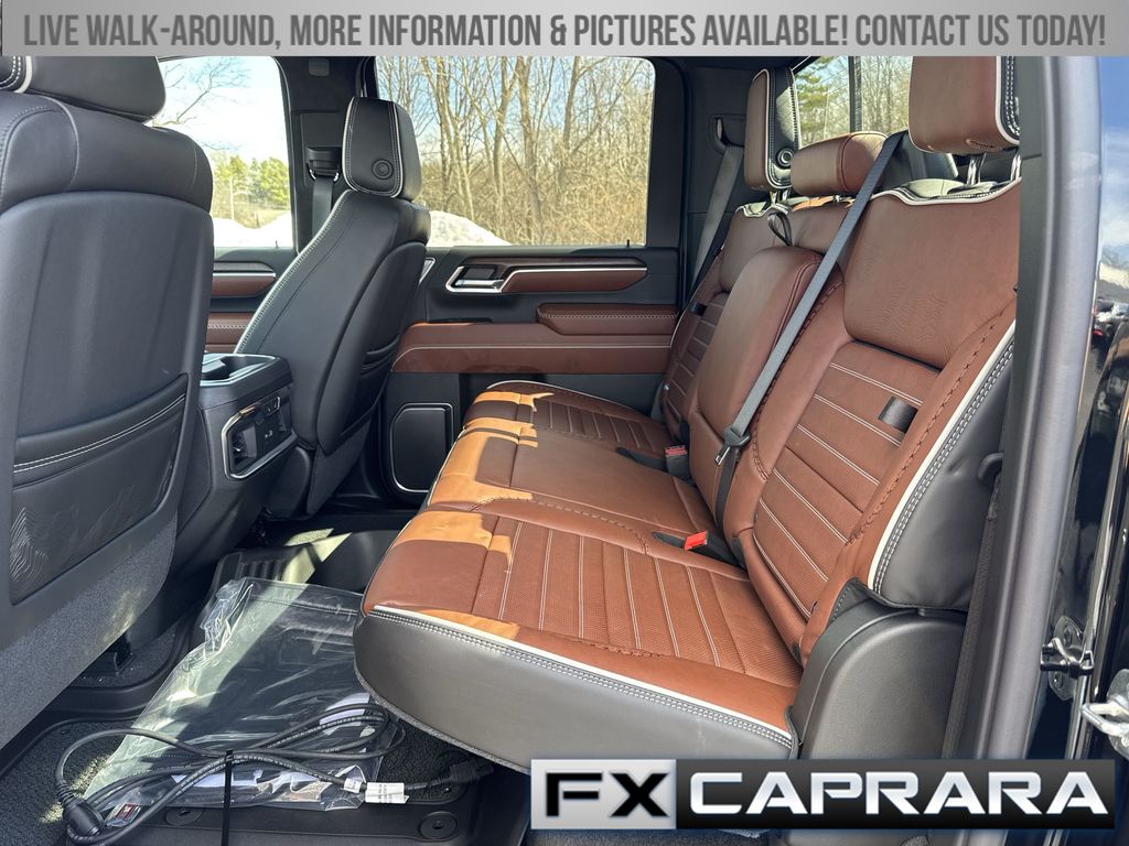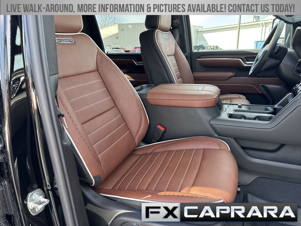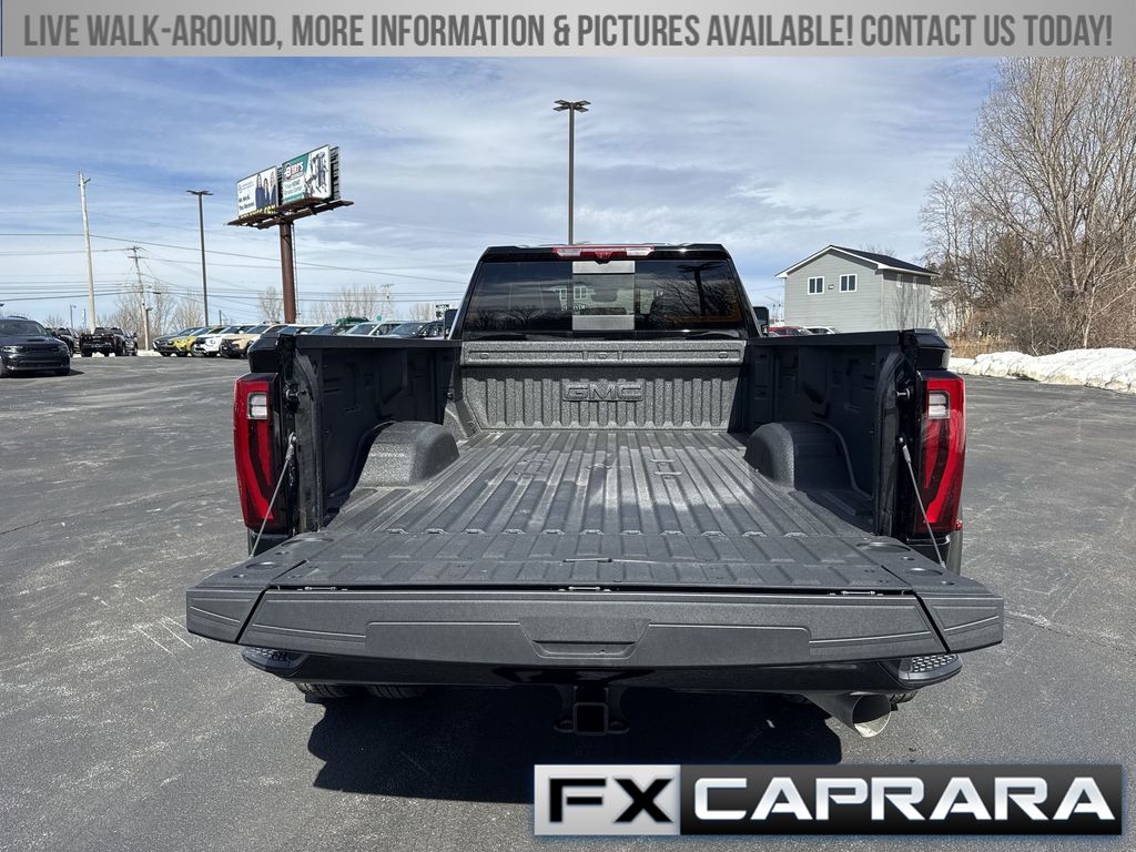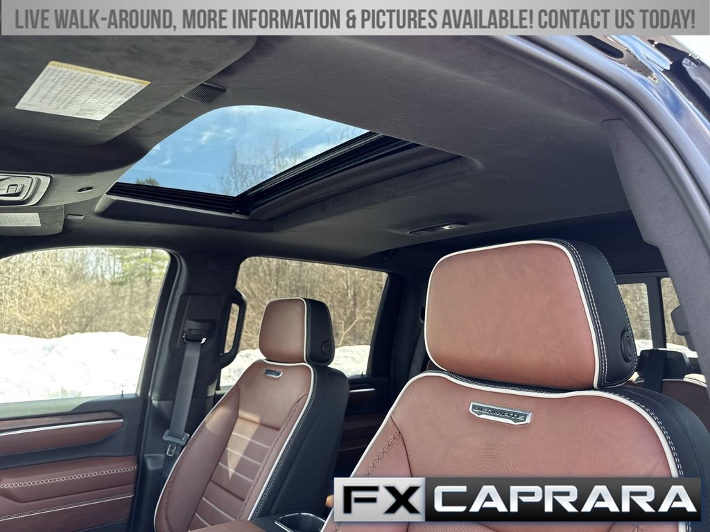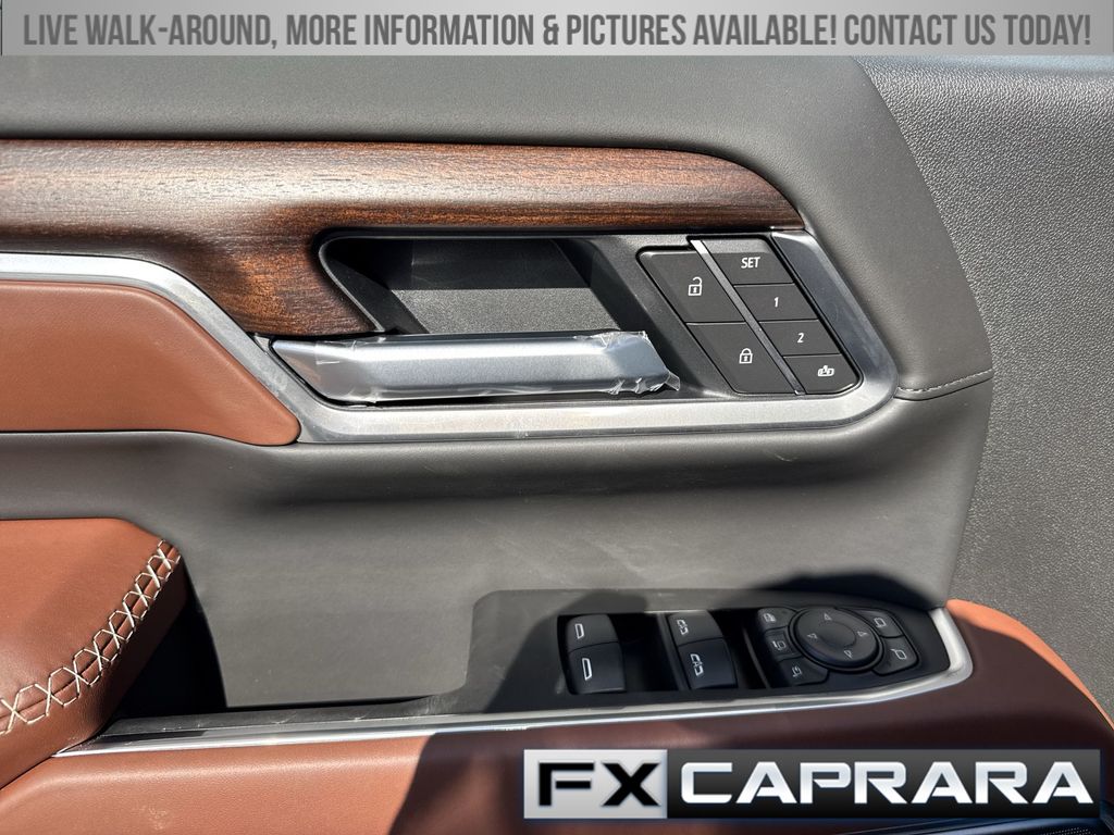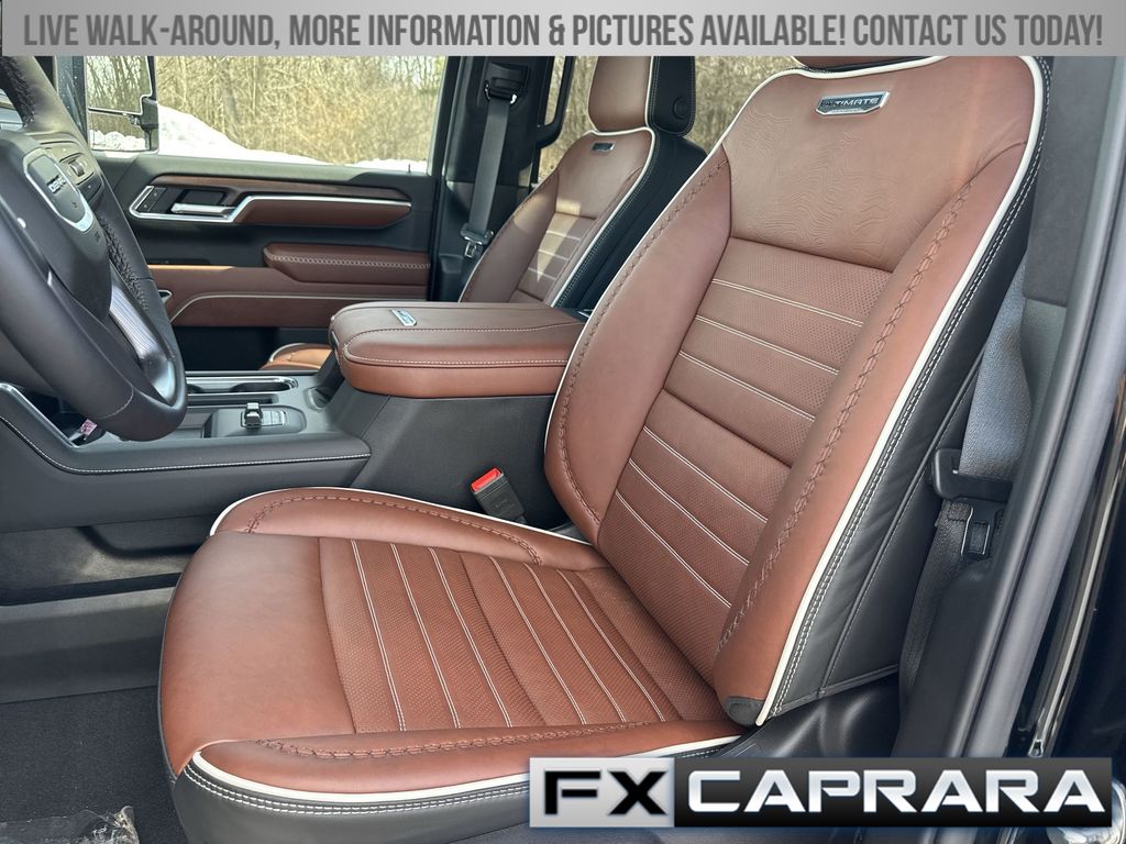 10-Speed Automatic, 4WD, Leather, 12 Speakers, 120-Volt Bed Mounted Power Outlet, 120-Volt Instrument Panel Power Outlet, 16-Way Power Driver Seat Adjuster with Lumbar, 16-Way Power Passenger Seat Adjuster with Lumbar, 2 Charge-Only Rear USB Ports, 2 Charge/Data USB Ports Inside Center Console, 2 USB Ports, 2-Speed Active Transfer Case, 220 Amp Alternator, 3.42 Rear Axle Ratio, 4-Wheel Disc Brakes, ABS brakes, Air Conditioning, Alloy wheels, AM/FM radio: SiriusXM with 360L, Auto High-beam Headlights, Auto-dimming door mirrors, Auto-Dimming Inside Rearview Mirror with Camera, Auto-dimming Rear-View mirror, Automatic Emergency Braking, Automatic temperature control, Bed View Camera with Two Trailer Camera Provisions, Block heater, Bose Premium Series 12-Speaker System, Brake assist, Buckle to Drive, Bumpers: body-color, Compass, Deep-Tinted Glass, Delay-off headlights, Driver door bin, Driver Memory, Driver vanity mirror, Dual front impact airbags, Dual front side impact airbags, Dual Heavy-Duty 70 Amp-Hour Battery, Electric Rear-Window Defogger, Electronic Stability Control, Emergency communication system: OnStar Services capable, Exterior Parking Camera Rear, Floor-Mounted Center Console, Following Distance Indicator, Forward Collision Alert, Front anti-roll bar, Front Bucket Seats, Front Center Armrest, Front dual zone A/C, Front fog lights, Front Pedestrian Braking, Front Rain-Sensing Wipers, Front reading lights, Front wheel independent suspension, Full Grain Leather Seat Trim, Fully automatic headlights, Garage door transmitter, Genuine wood dashboard insert, Genuine wood door panel insert, GMC Premium 13.4" Diagonal Information Display, HD Surround Vision, Heads-Up Display, Heated 2nd Row Outboard Seats, Heated door mirrors, Heated Driver and Front Outboard Passenger Seats, Heated front seats, Heated rear seats, Heated steering wheel, Hitch Guidance with Hitch View, Illuminated entry, in-Vehicle Trailering App, IntelliBeam Automatic High Beam on/Off, Keyless Open and Start, Lane Departure Warning System, Leather steering wheel, LED Cargo Area Lighting, LED Smoked Amber Roof Marker Lamps, Low tire pressure warning, Manual Tilt-Wheel/Telescoping Steering Column, Memory seat, Multicolor 15" Diagonal Head-Up Display, Occupant sensing airbag, Outside temperature display, Overhead airbag, Overhead console, Panic alarm, Passenger door bin, Passenger vanity mirror, Pickup Bed, Power door mirrors, Power driver seat, Power Front Windows with Passenger Express Up/Down, Power moonroof, Power passenger seat, Power Sliding Rear Window with Defogger, Power steering, Power Sunroof, Power windows, Premium audio system: Premium GMC Infotainment System, ProGrade Trailering System, Push Button Start, Radio: AM/FM Stereo with Premium GMC Infotainment System, Rain sensing wipers, Rear Cross Traffic Alert, Rear reading lights, Rear seat center armrest, Rear step bumper, Rear window defroster, Remote keyless entry, Remote Vehicle Starter System, Safety Alert Seat, Security system, Signature Denali Ultimate Grille in Vader Chrome, SiriusXM with 360L Trial Subscription, Speed control, Speed-sensing steering, Split folding rear seat, Spray-on Pickup Bedliner with GMC Logo, Steering Wheel Audio Controls, Steering wheel mounted audio controls, Tachometer, Technology Package, Telescoping steering wheel, Tilt steering wheel, Traction control, Trailer Camera Provisions, Trailer Side Blind Zone Alert, Trailer Tire Pressure Monitor Sensors, Trip computer