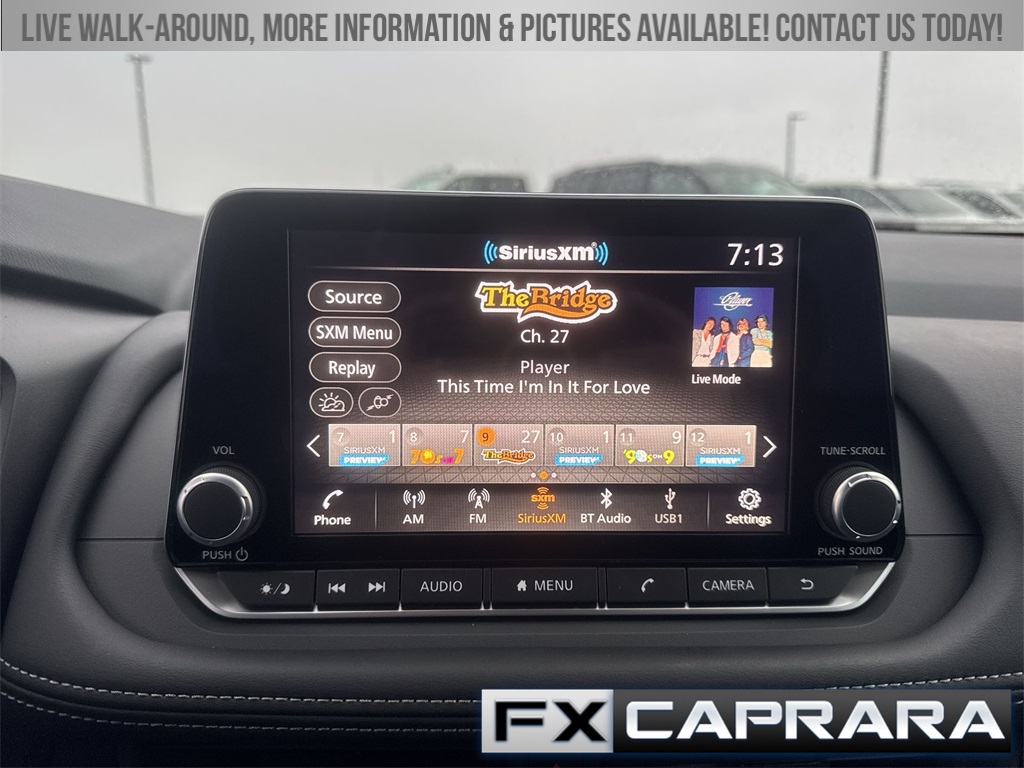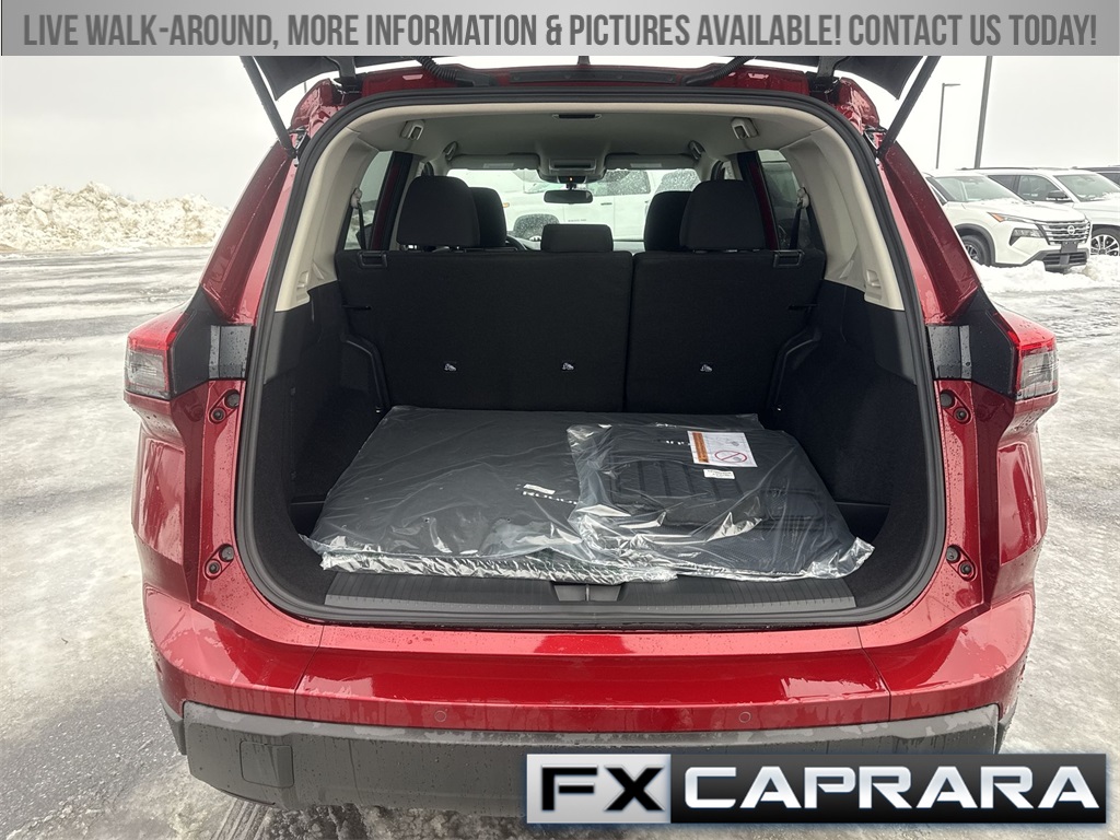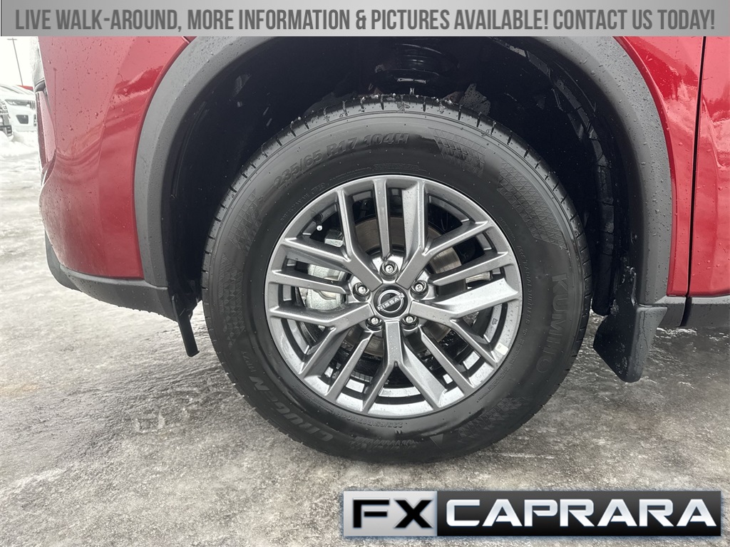 AWD, 17" Alloy Wheels, 4 Speakers, 4-Wheel Disc Brakes, ABS brakes, Air Conditioning, Alloy wheels, AM/FM radio: Sirius, Apple CarPlay/Android Auto, Auto High-beam Headlights, Black Splash Guards (set of 4), Blind Spot Warning, Brake assist, Bumpers: body-color, Cloth Seat Trim, Delay-off headlights, Driver door bin, Driver vanity mirror, Dual front impact airbags, Dual front side impact airbags, Electronic Stability Control, First Aid Kit, Floor Mats with 1-Piece Cargo Area Protector, Four wheel independent suspension, Front anti-roll bar, Front Bucket Seats, Front Center Armrest, Front reading lights, Fully automatic headlights, Illuminated entry, Knee airbag, Low tire pressure warning, Occupant sensing airbag, Outside temperature display, Overhead airbag, Overhead console, Panic alarm, Passenger door bin, Passenger vanity mirror, Power door mirrors, Power steering, Power windows, Premium Paint, Radio data system, Radio: AM/FM NissanConnect, Rear anti-roll bar, Rear seat center armrest, Rear side impact airbag, Rear window defroster, Rear window wiper, Remote keyless entry, Speed control, Speed-sensing steering, Speed-Sensitive Wipers, Split folding rear seat, Spoiler, Steering wheel mounted audio controls, Tachometer, Telescoping steering wheel, Tilt steering wheel, Traction control, Trip computer, Variably intermittent wipers, AWD.
