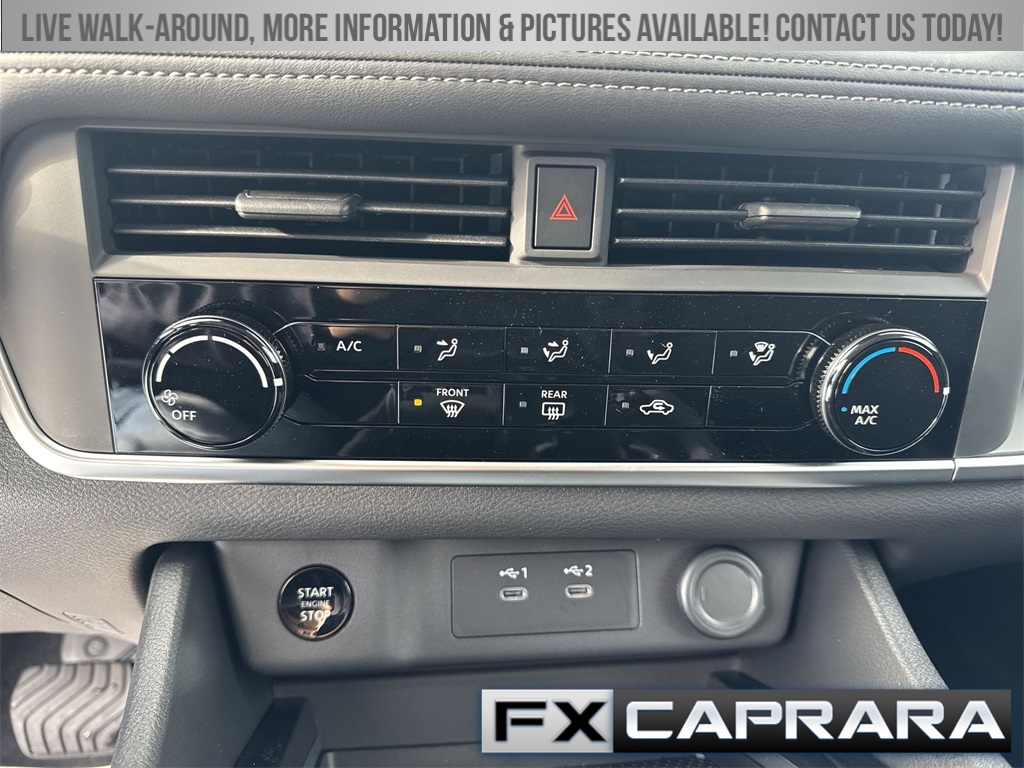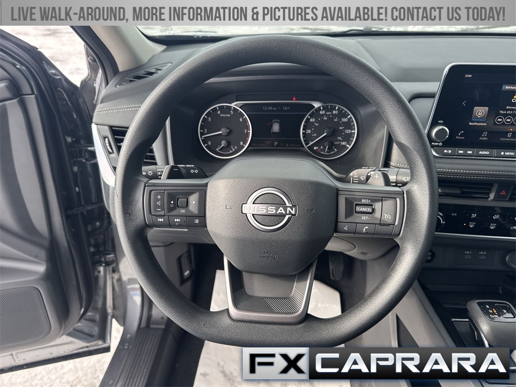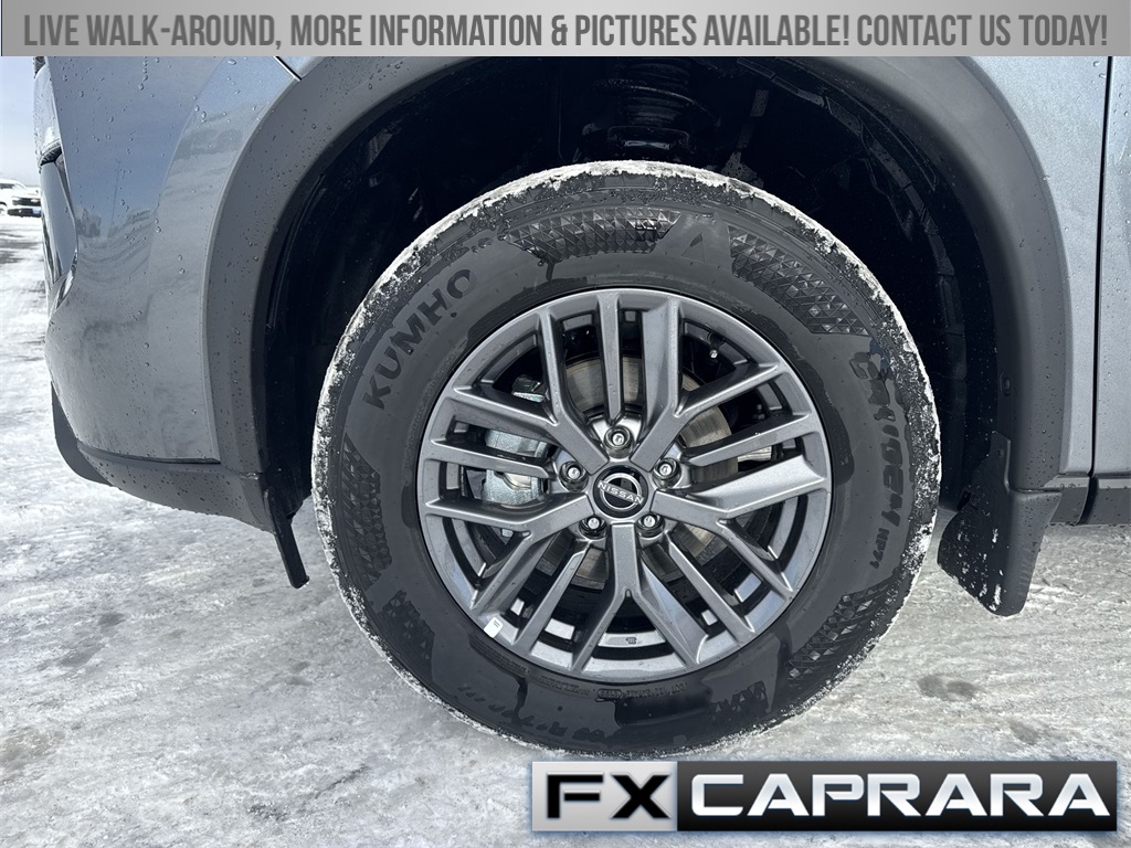 AWD, 17" Alloy Wheels, 4 Speakers, 4-Wheel Disc Brakes, ABS brakes, Air Conditioning, Alloy wheels, AM/FM radio: Sirius, Apple CarPlay/Android Auto, Auto High-beam Headlights, Black Splash Guards (set of 4), Blind Spot Warning, Brake assist, Bumpers: body-color, Cloth Seat Trim, Delay-off headlights, Driver door bin, Driver vanity mirror, Dual front impact airbags, Dual front side impact airbags, Electronic Stability Control, First Aid Kit, Floor Mats with 1-Piece Cargo Area Protector, Four wheel independent suspension, Front anti-roll bar, Front Bucket Seats, Front Center Armrest, Front reading lights, Fully automatic headlights, Illuminated entry, Knee airbag, Low tire pressure warning, Occupant sensing airbag, Outside temperature display, Overhead airbag, Overhead console, Panic alarm, Passenger door bin, Passenger vanity mirror, Power door mirrors, Power steering, Power windows, Radio data system, Radio: AM/FM NissanConnect, Rear anti-roll bar, Rear seat center armrest, Rear side impact airbag, Rear window defroster, Rear window wiper, Remote keyless entry, Speed control, Speed-sensing steering, Speed-Sensitive Wipers, Split folding rear seat, Spoiler, Steering wheel mounted audio controls, Tachometer, Telescoping steering wheel, Tilt steering wheel, Traction control, Trip computer, Variably intermittent wipers, AWD.